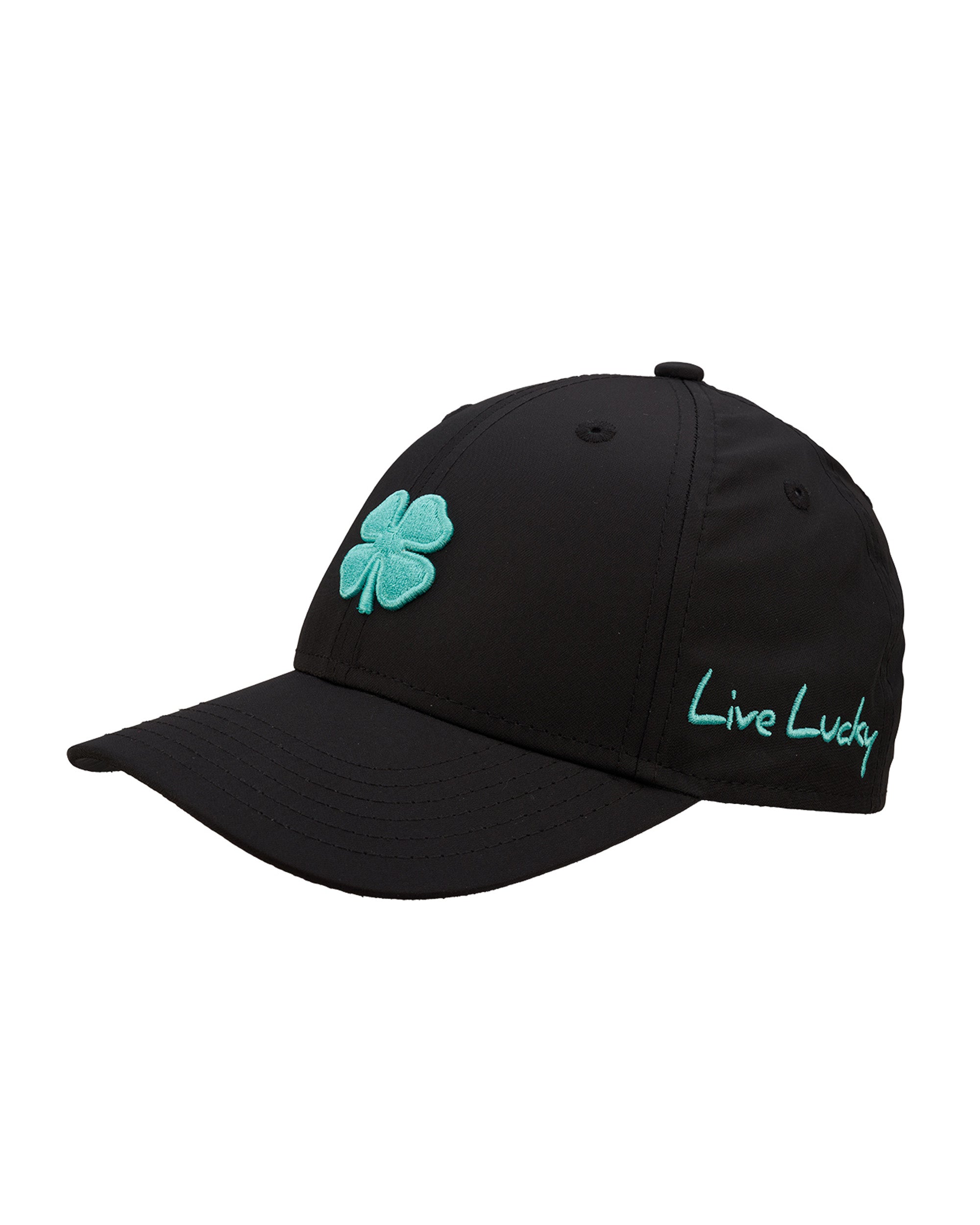 • Black Hat with 3D Light Blue Clover Icon