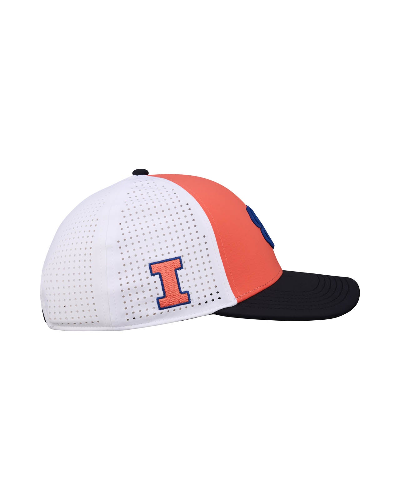 I-L-L! The Illinois Benchmark puts Fighting Illini pride front and center with a navy, orange, and white laser-cut design topped by a bold orange 3D clover. Perforated panels keep you cool from the first whistle to the final play, while the ultra-comfortable fit makes this University of Illinois snapback your go-to for game days, tailgates, and every moment you rep the orange and blue.