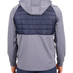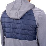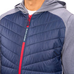 Introducing the Jaxon Quilt Jacket, a stylish blend of comfort and functionality. With a navy quilted body and poly-spandex navy heather hood and arms, it offers warmth and flexibility. The Black Clover moniker on the bold red zipper adds a distinctive touch, making it a standout piece in your wardrobe.