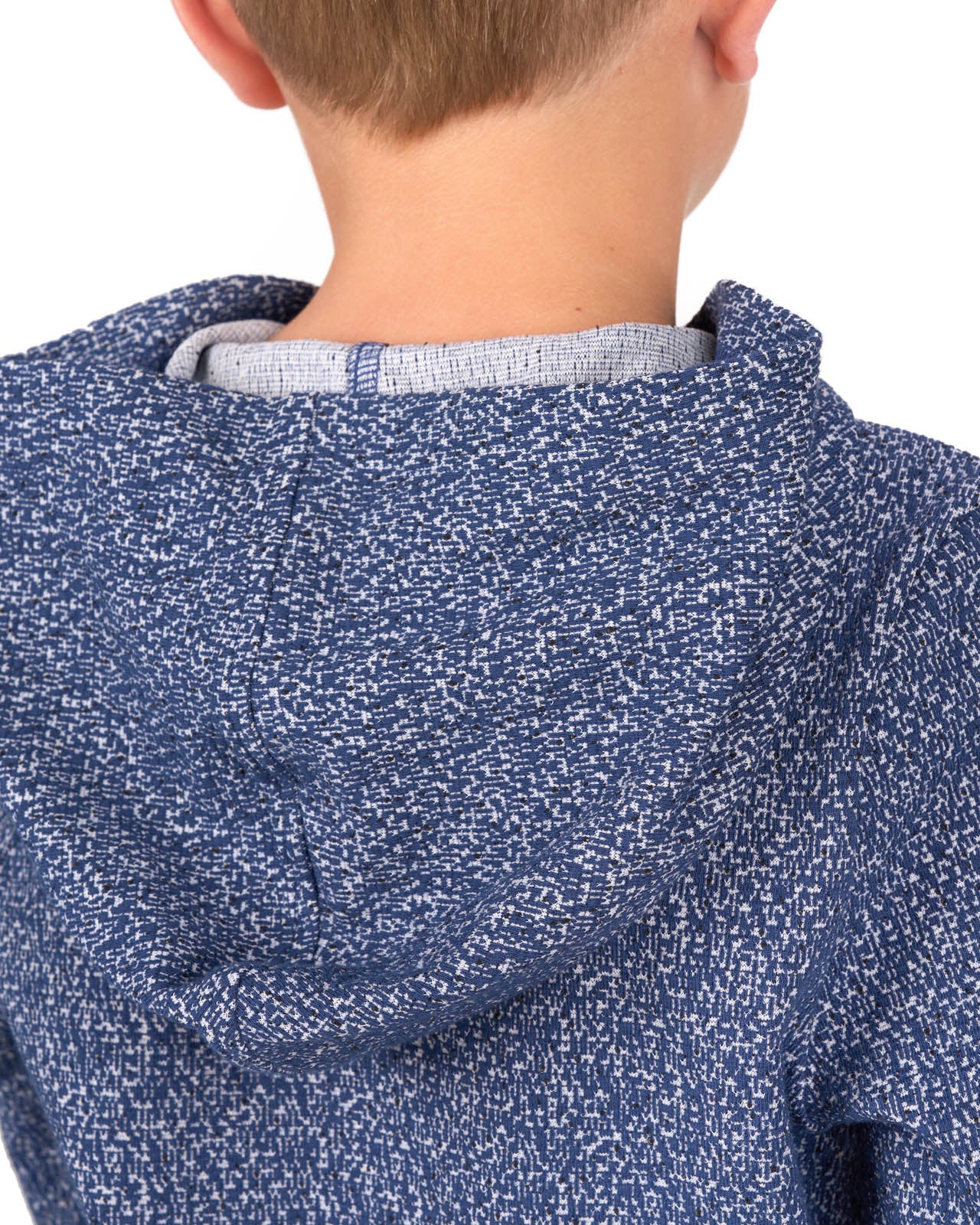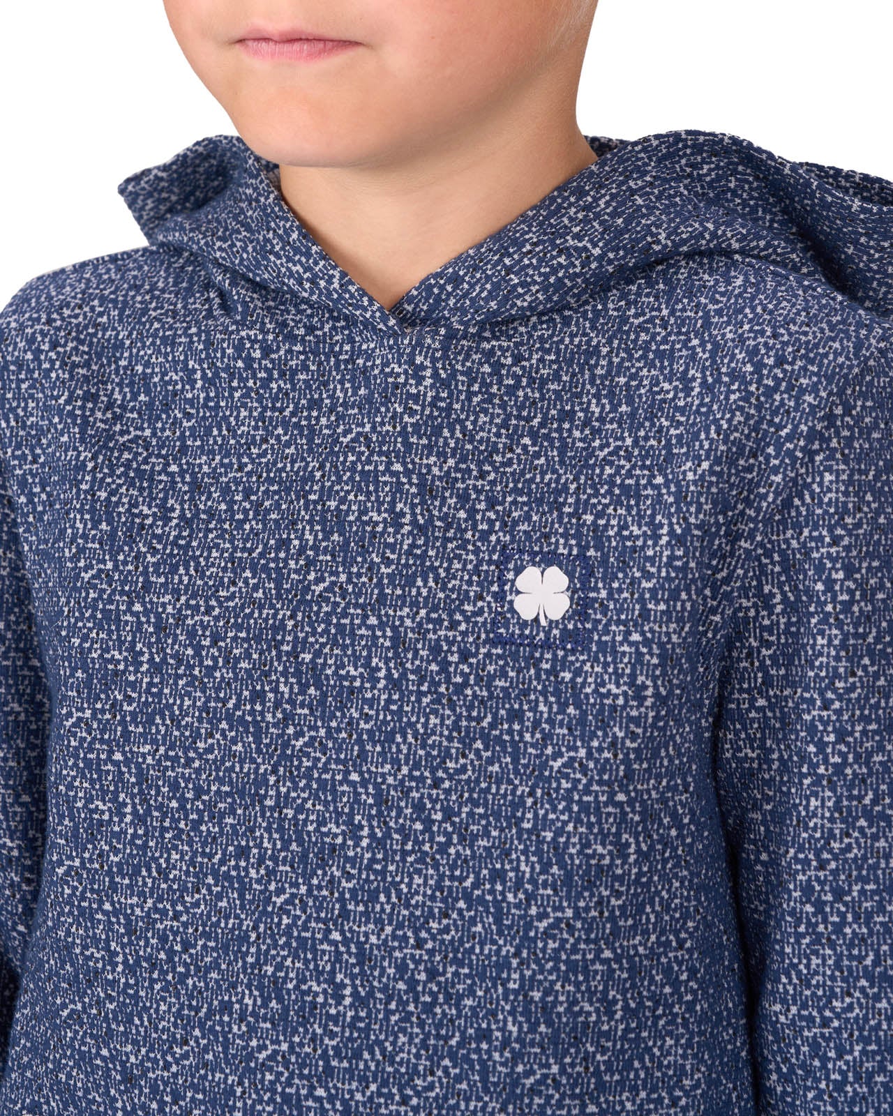 Our kids' Jr. Hughes Hoodie in navy blue offers a perfect blend of comfort and style with its textured speckled pattern. Made from double-knit stretch fabric, it’s ideal for cool mornings, active play, or casual outings. Featuring moisture-wicking and wrinkle-free technology, this hoodie is as versatile as it is stylish.
