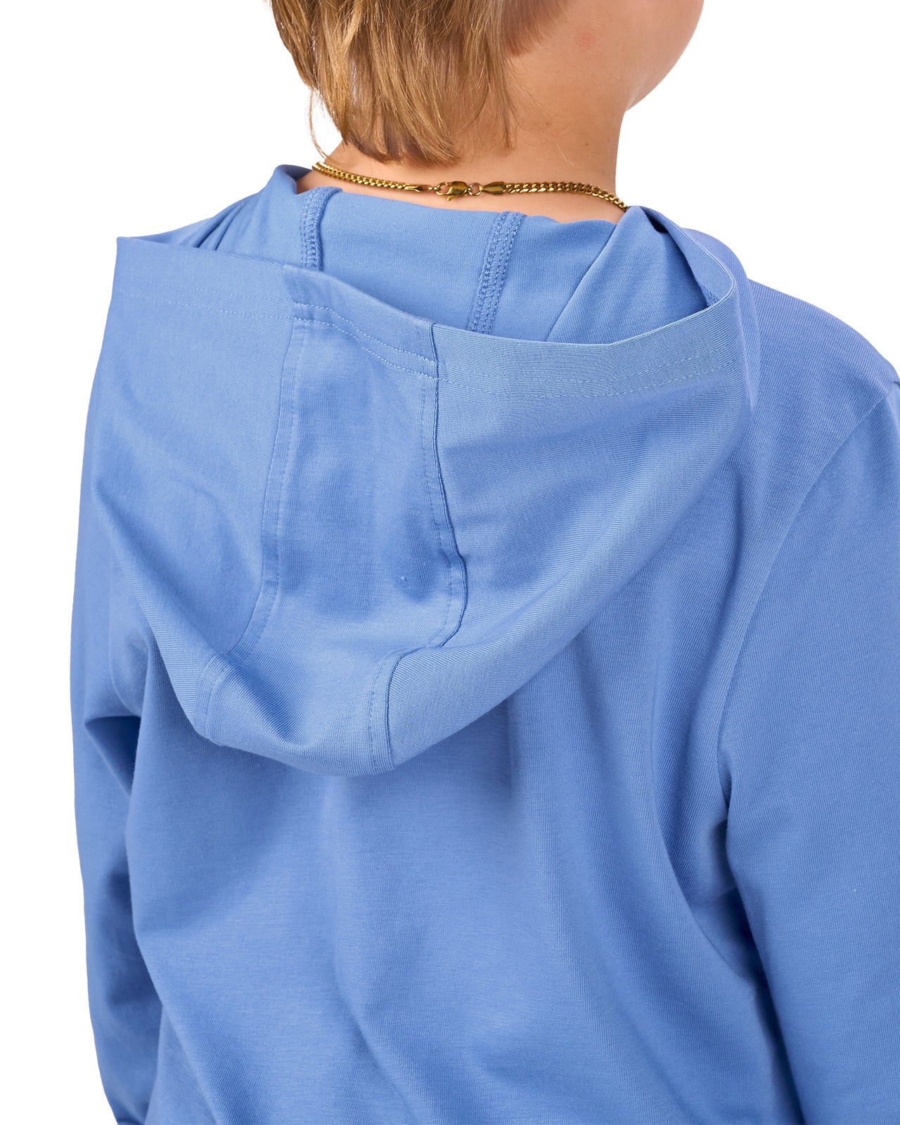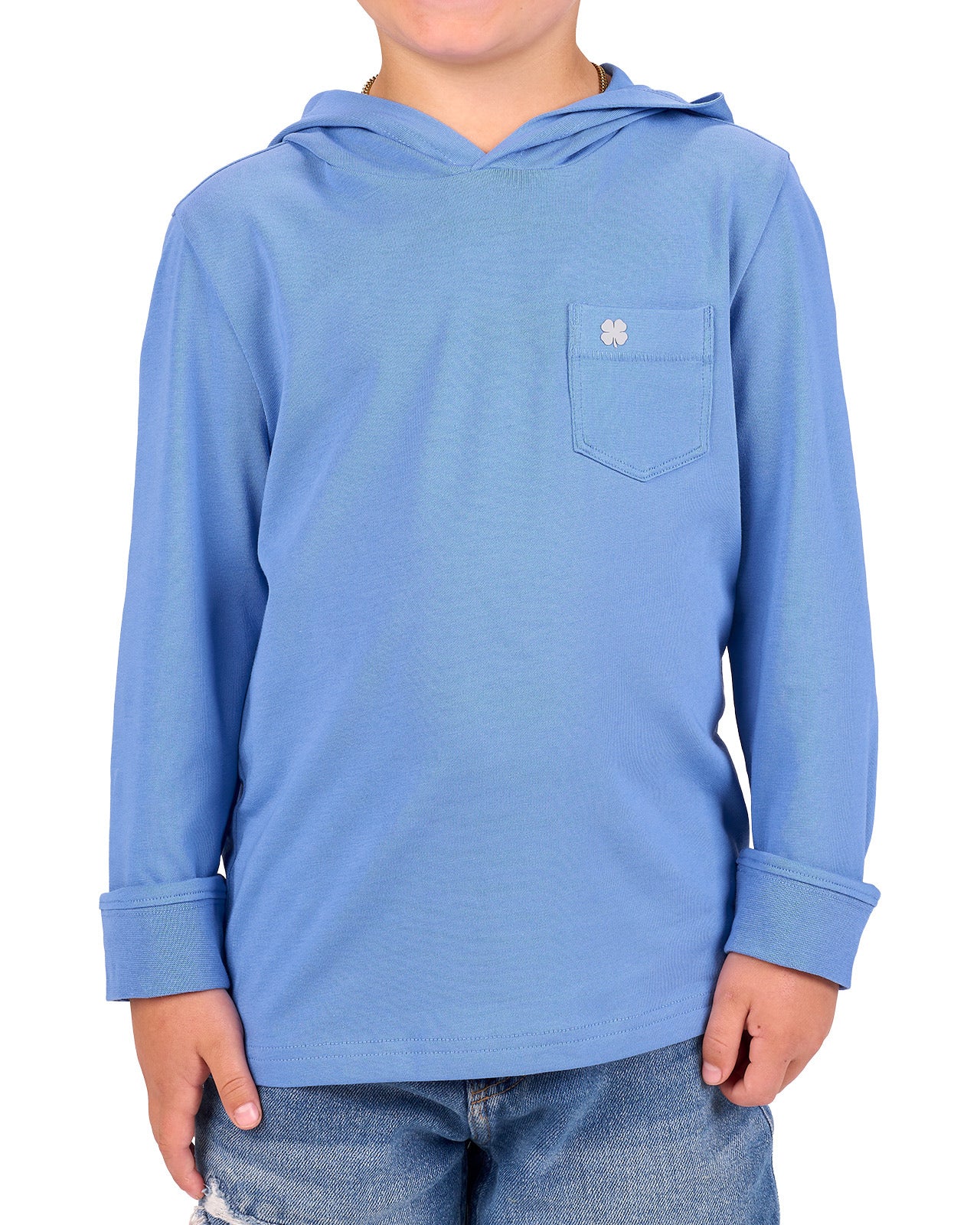 We’ve redefined the luxury tee (and added a hood!). Our long-sleeved ultramarine Luxe Tee Hoodie is now available in kids’ sizes! Featuring a pima cotton, poly and spandex blend, this ultra-soft, blue hoodie is the ultimate in athleisure style.
