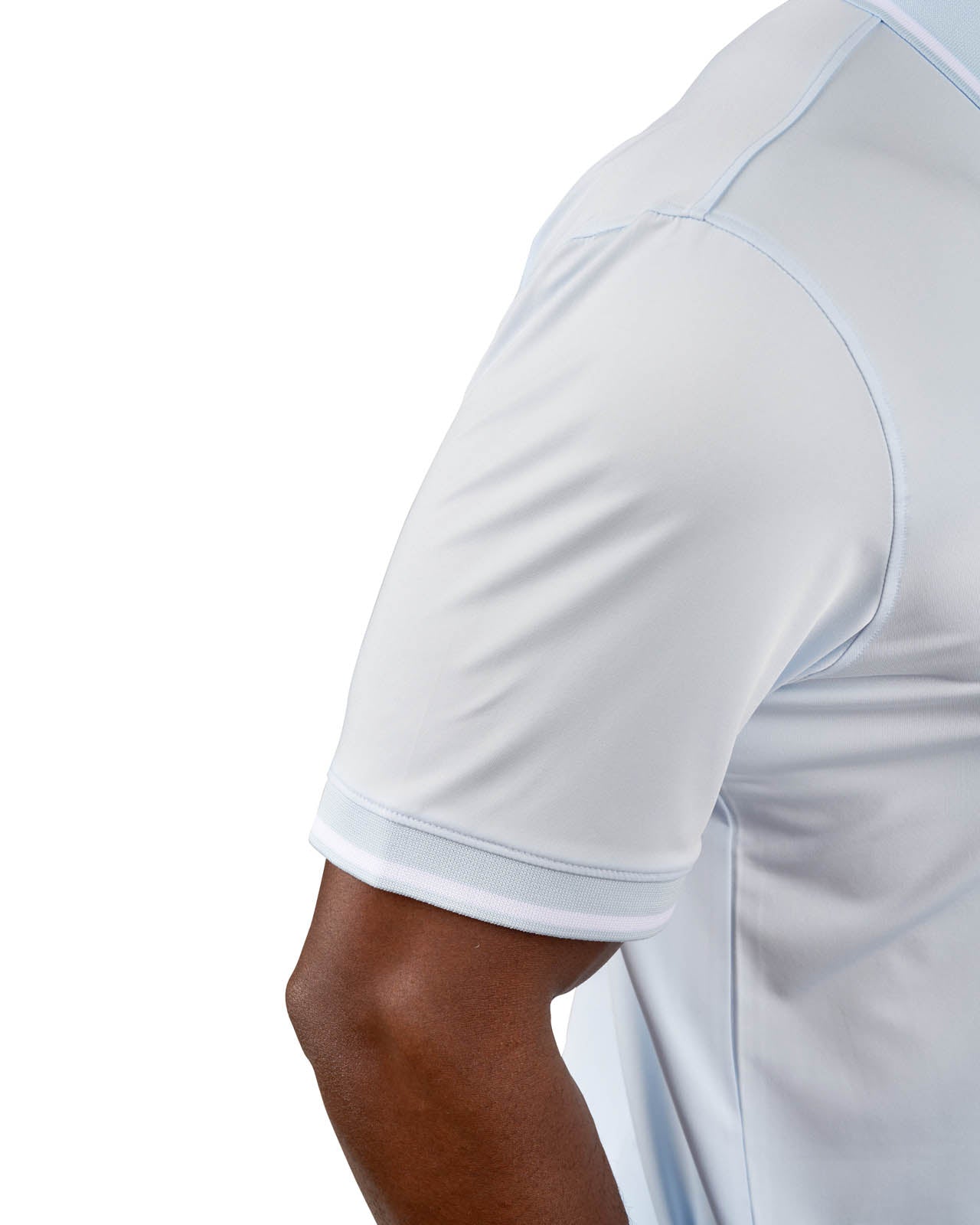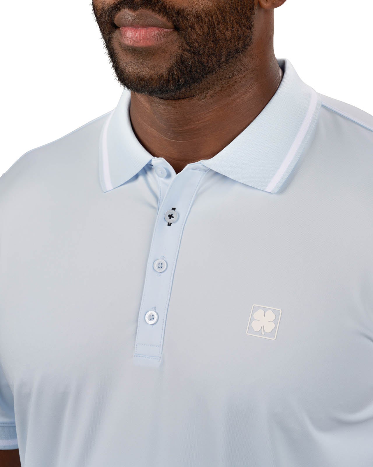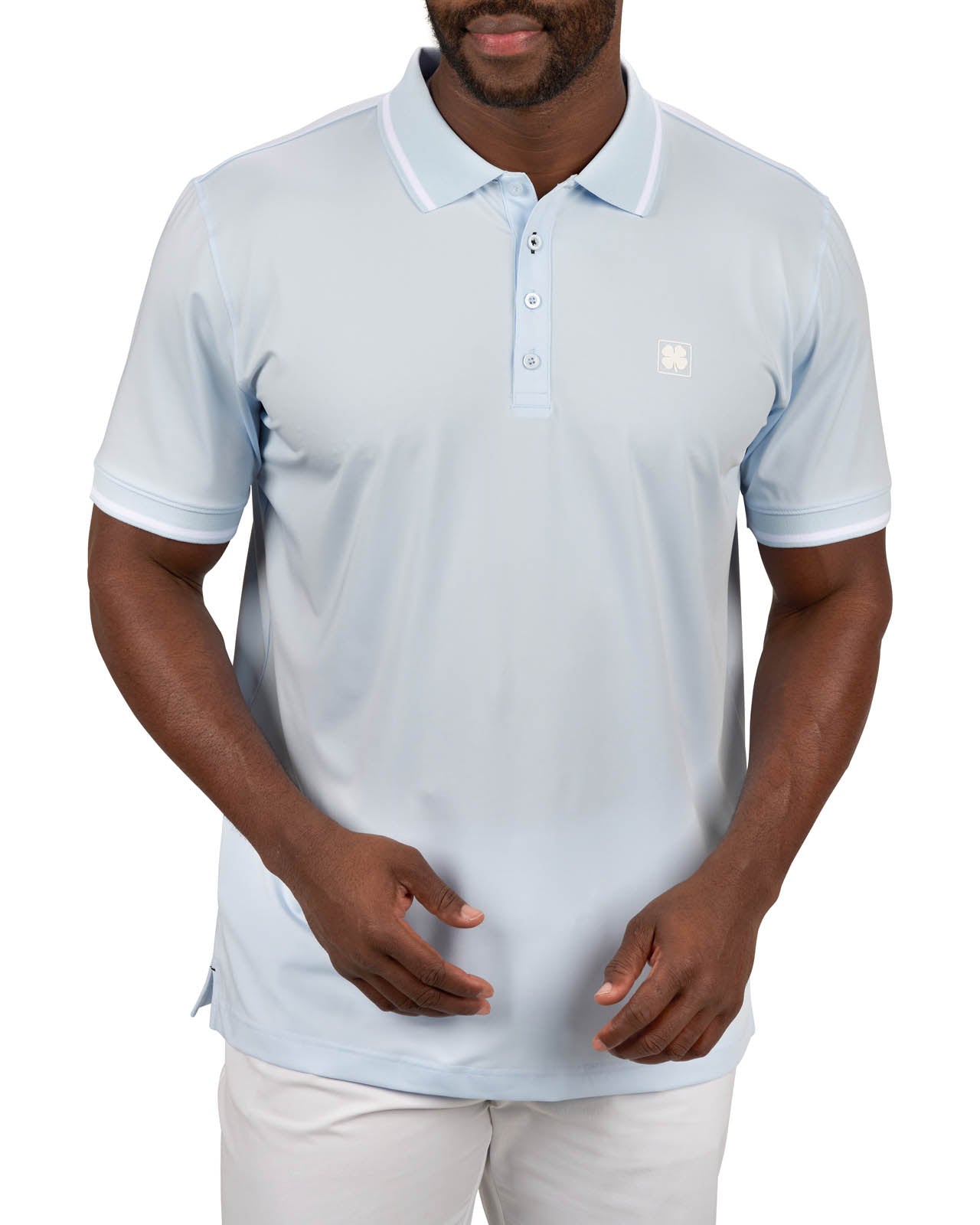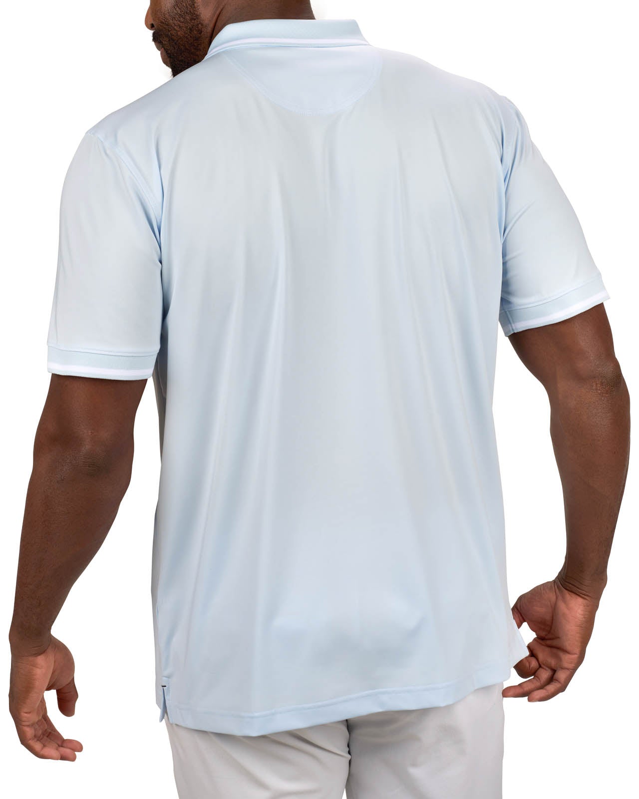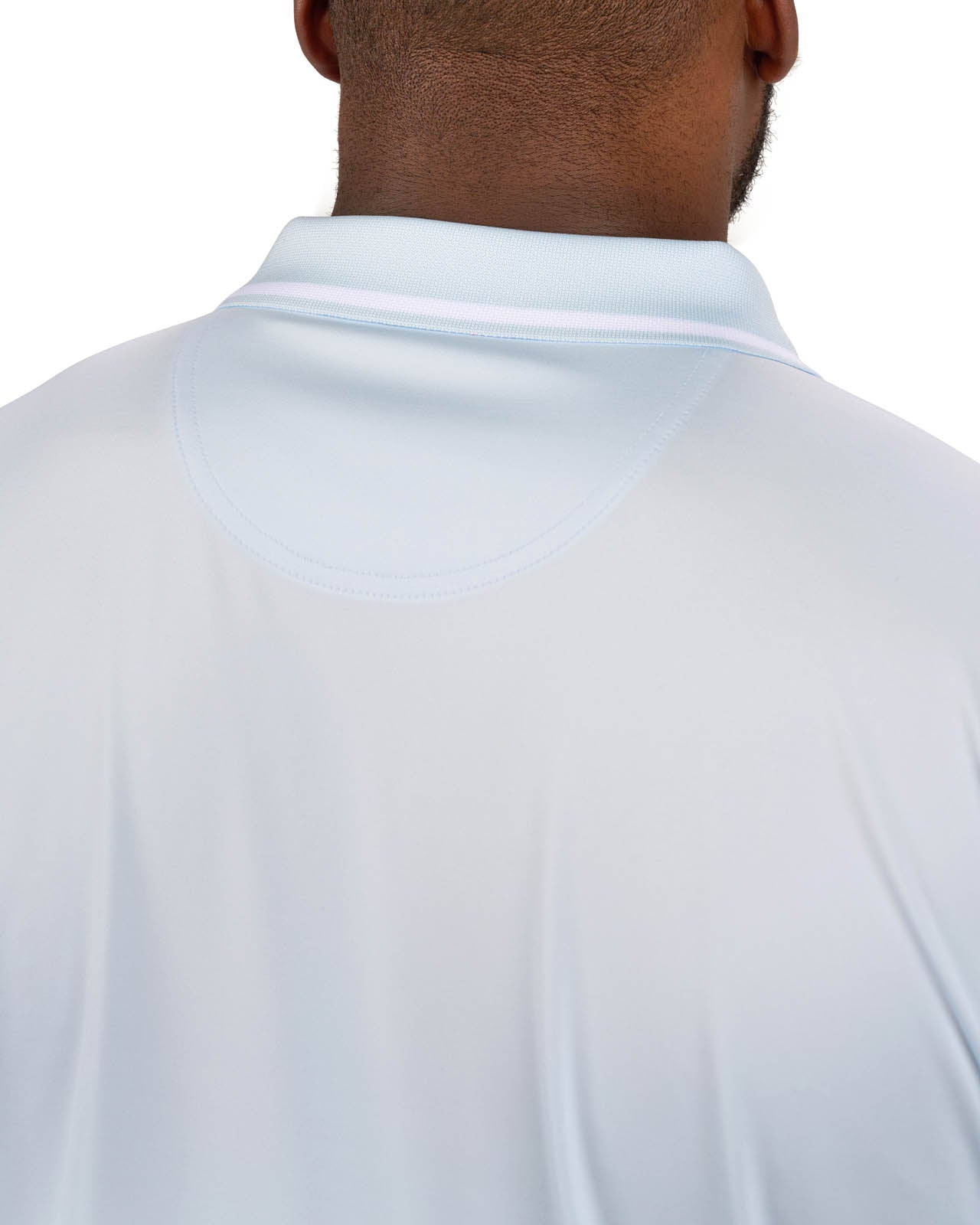Our ice blue Lincoln Polo offers classic style and superior comfort. This super-soft solid-colored polo features a no-curl rib knit collar and cuffs. Made from a breathable, moisture-resistant poly spandex blend, it includes shape retention technology for a polished look that lasts on the course and in the boardroom.