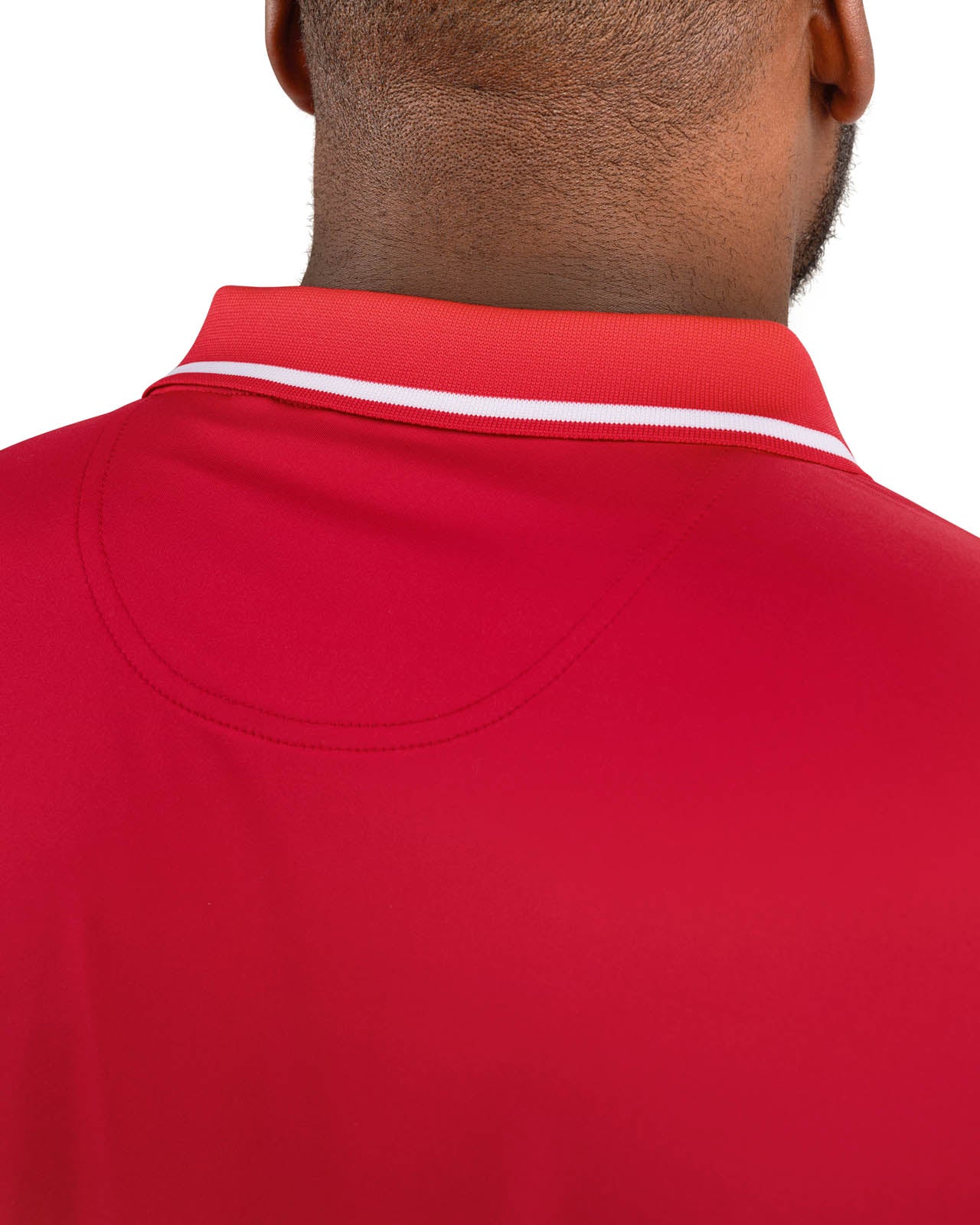 Our red Lincoln Polo offers classic style and superior comfort. This super-soft solid-colored polo features a no-curl rib knit collar and cuffs. Made from a breathable, moisture-resistant poly spandex blend, it includes shape retention technology for a polished look that lasts on the course and in the boardroom.