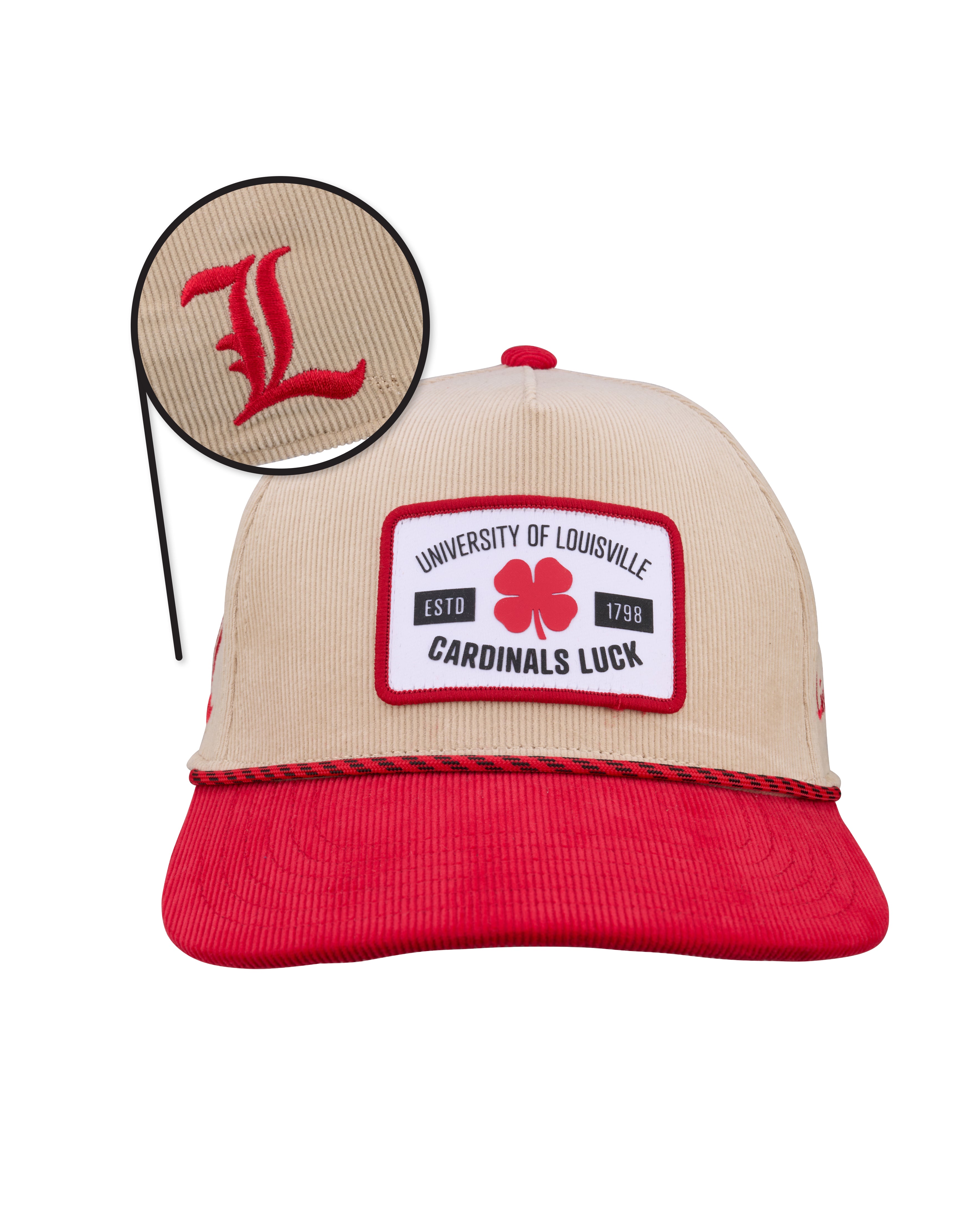 Celebrate Cardinal tradition with the Louisville Legacy Hat — a retro cream and black snapback built for fans who live for game day heritage. Crafted from premium corduroy and finished with black rope and an HD clover patch, this University of Louisville snapback blends vintage style with modern comfort, making it a staple for the stadium to everyday wear.