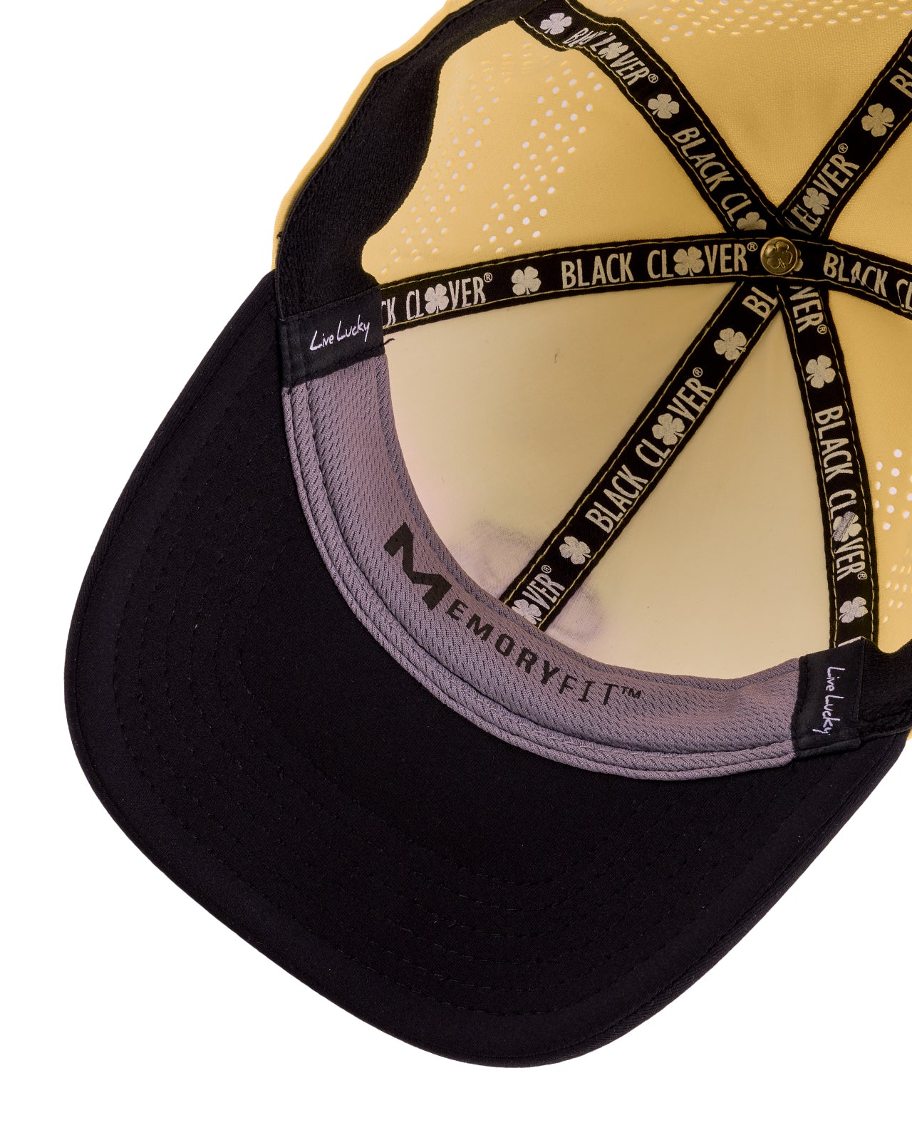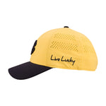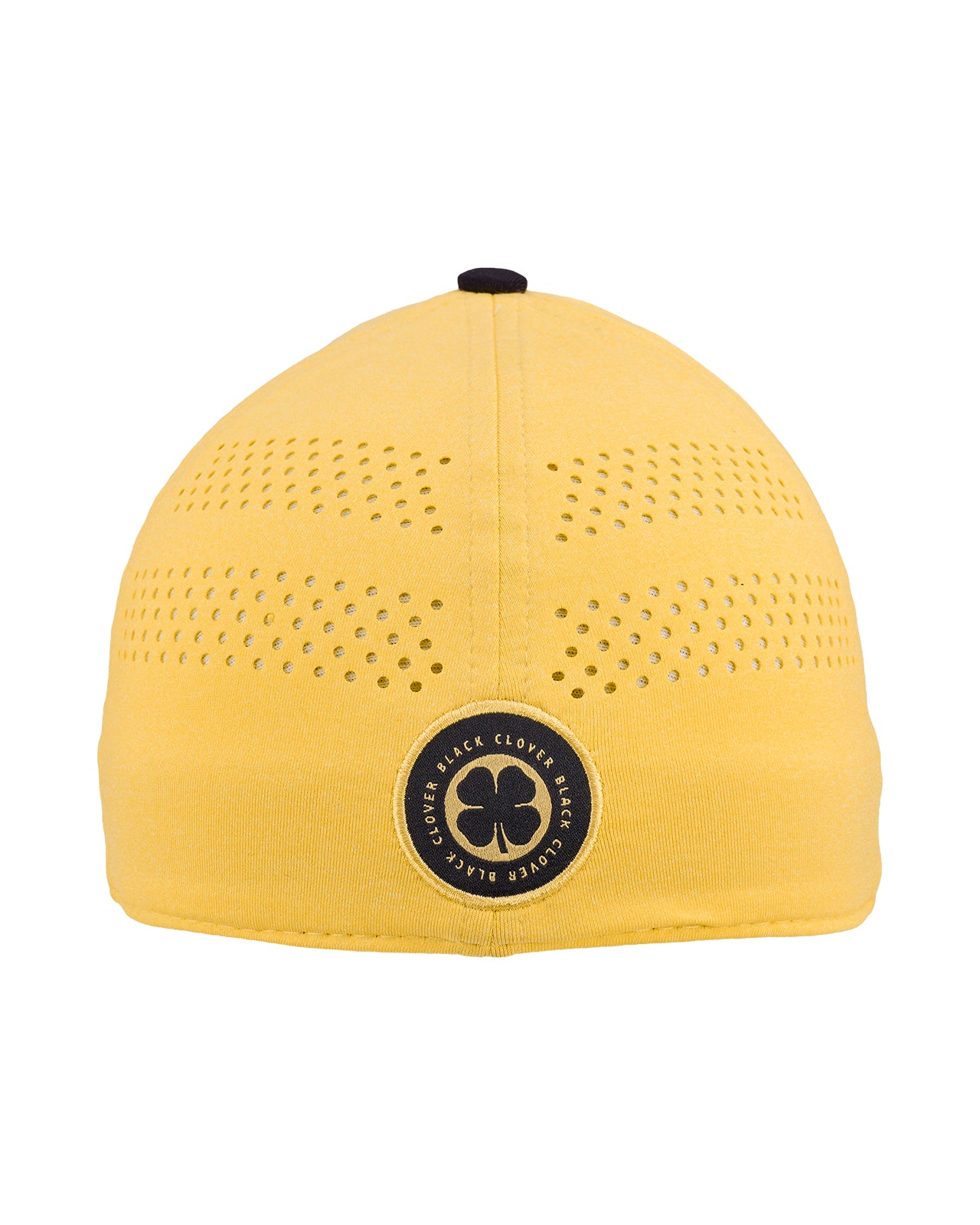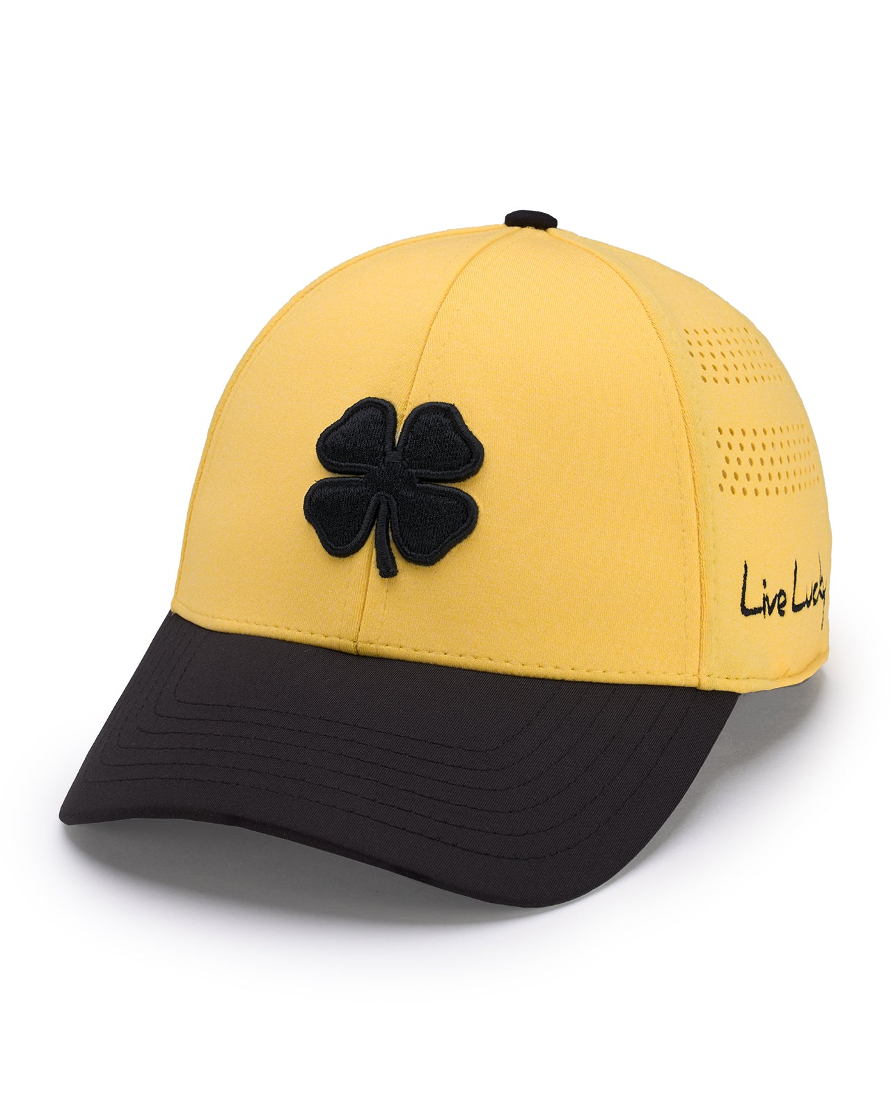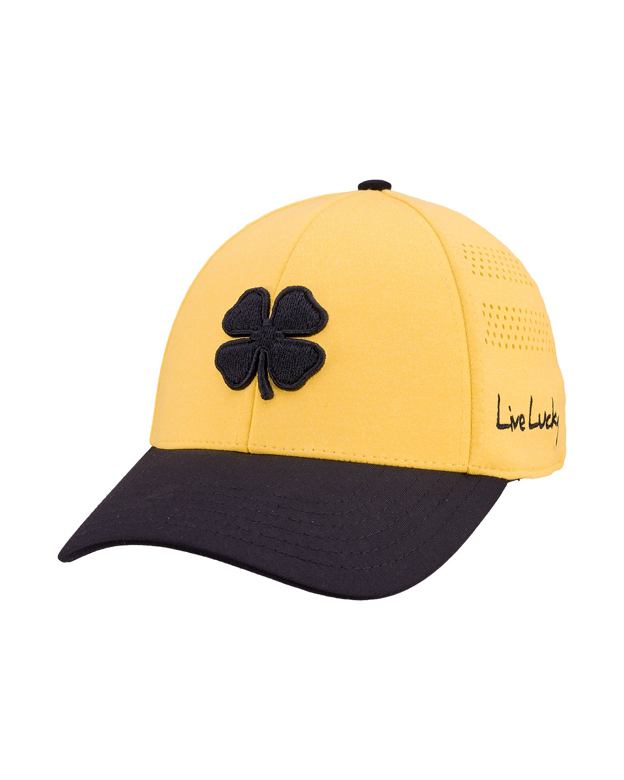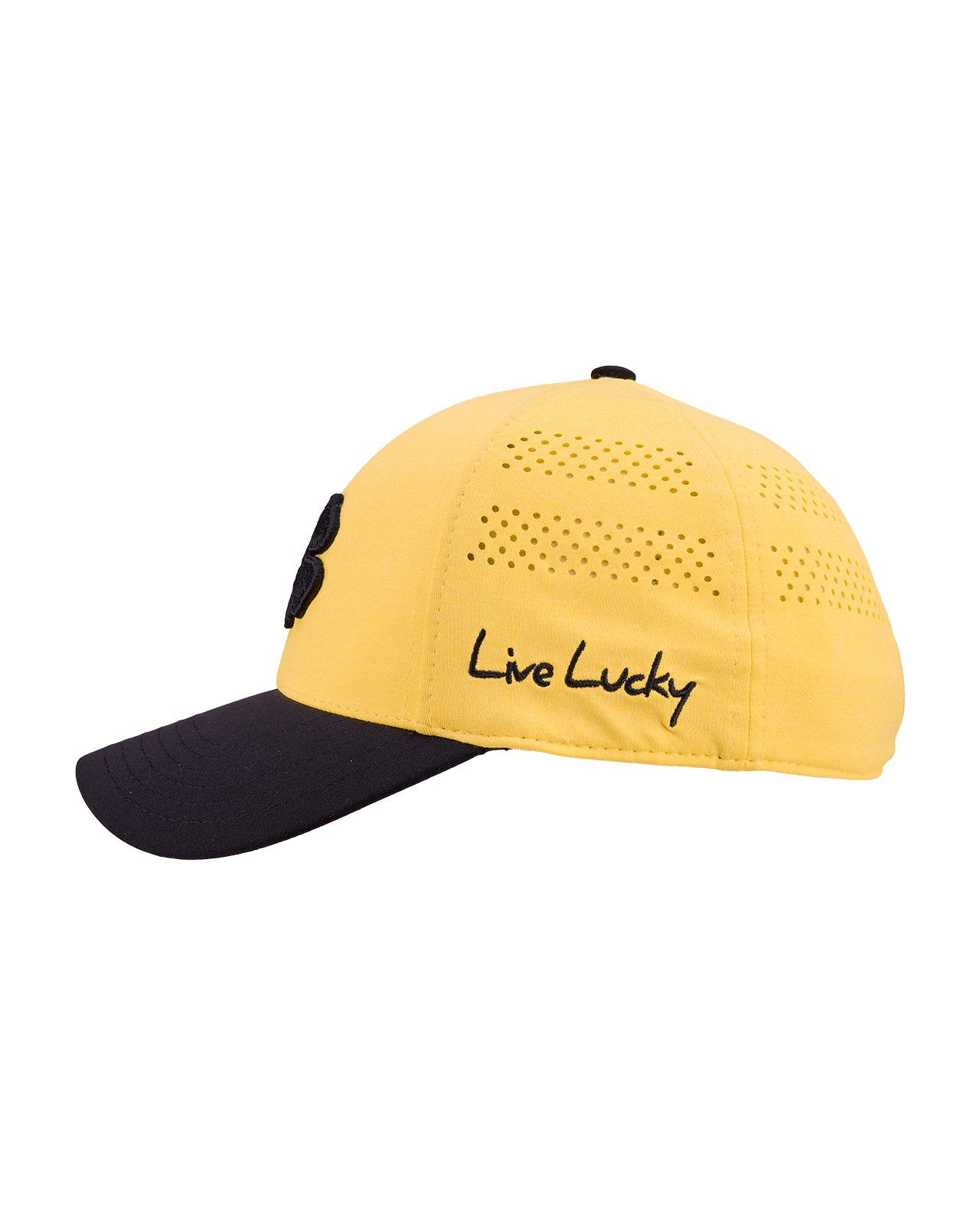 Comfort meets class with our Lucky Heather Laser 3 Hat, part of our new exclusive Memory-Fit™️ athletic headwear. This fitted two-tone hat features heather yellow perforated features with a yellow background, adorned with our black signature clover emblem in 3D. Our unique Memory-Fit™️ technology incorporates high-quality memory foam in the headband, offering a superior fit that molds to your head, enhanced comfort for long-term wear, increased sweat absorption, and exceptional wearability.