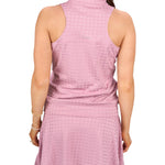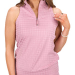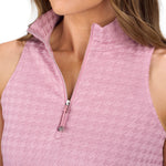 Elevate your game with our cosmic pink women's Lynx Sleeveless Polo, crafted from poly spandex jacquard stretch in a tonal herringbone. Stylish and flattering, it offers supreme comfort, breathability, and moisture-wicking performance. Perfect for pickleball, tennis, or golf, and pairs perfectly with our Lynx Skort.
