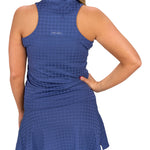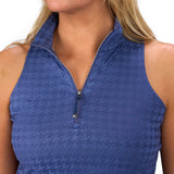 Elevate your game with our ocean navy women's Lynx Sleeveless Polo, crafted from poly spandex jacquard stretch in a tonal herringbone. Stylish and flattering, it offers supreme comfort, breathability, and moisture-wicking performance. Perfect for pickleball, tennis, or golf, and pairs perfectly with our Lynx Skort.