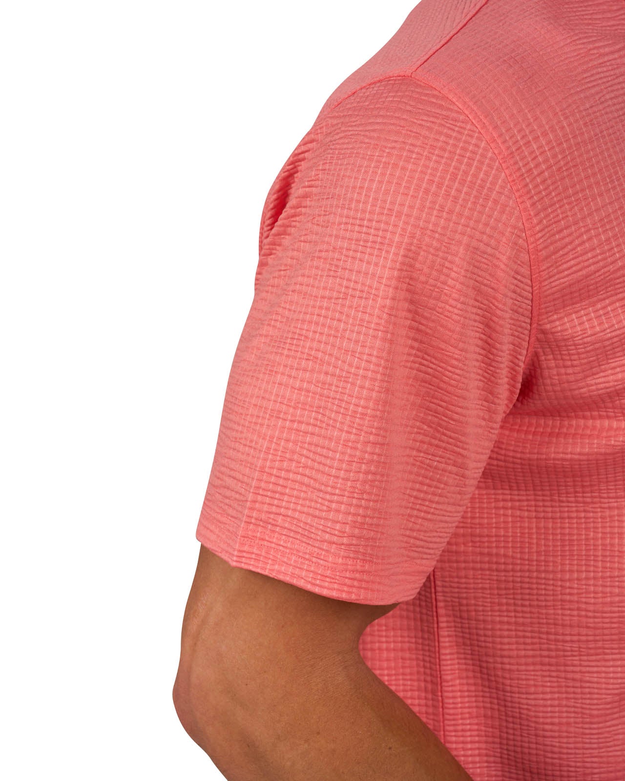 The solid sunset orange Marco Polo combines sleek design with premium performance. Made from 100% poly crinkled interlock, it features no-curl rib knit trim for a polished look. With 4-way stretch, moisture-wicking, shape-retention technology, this breathable polo is built for comfort and style for any occasion.