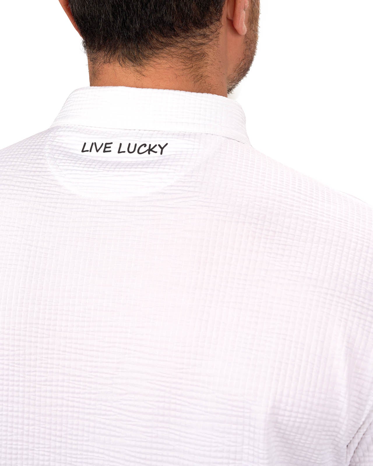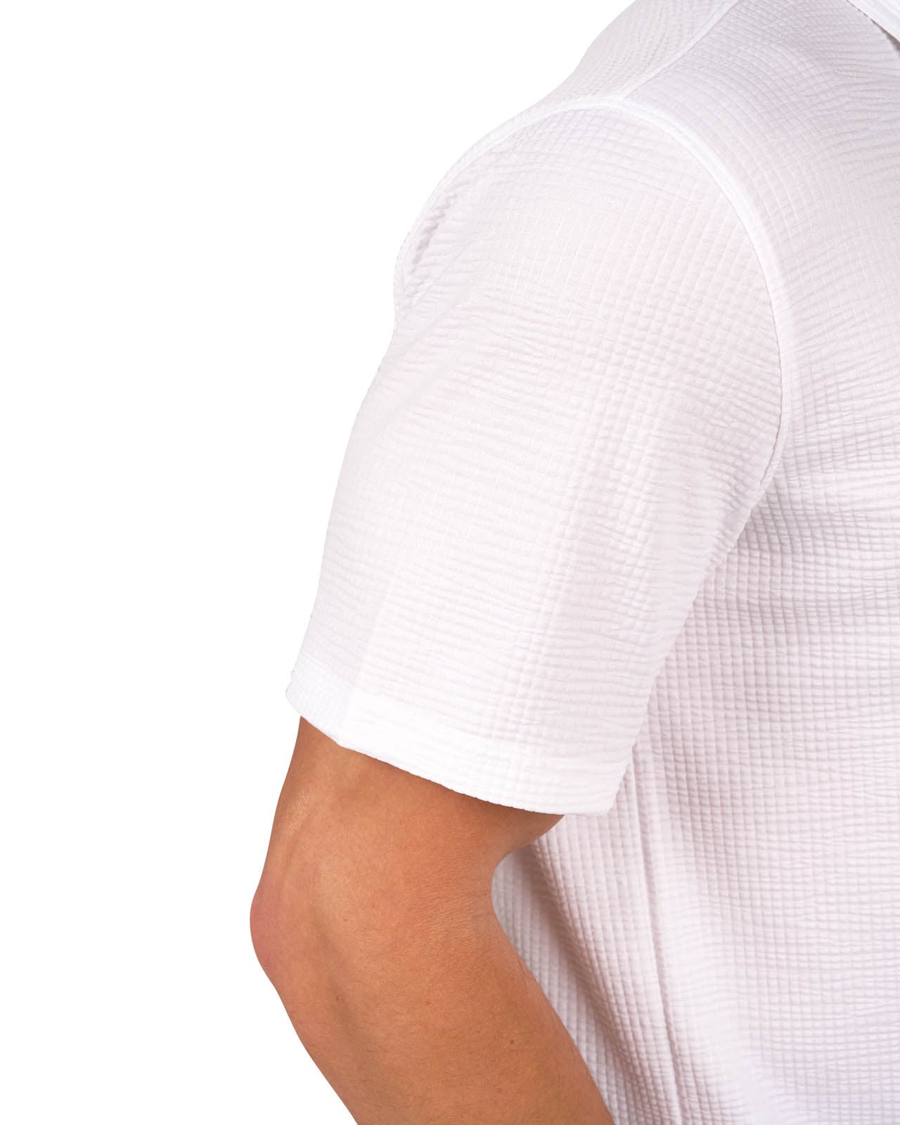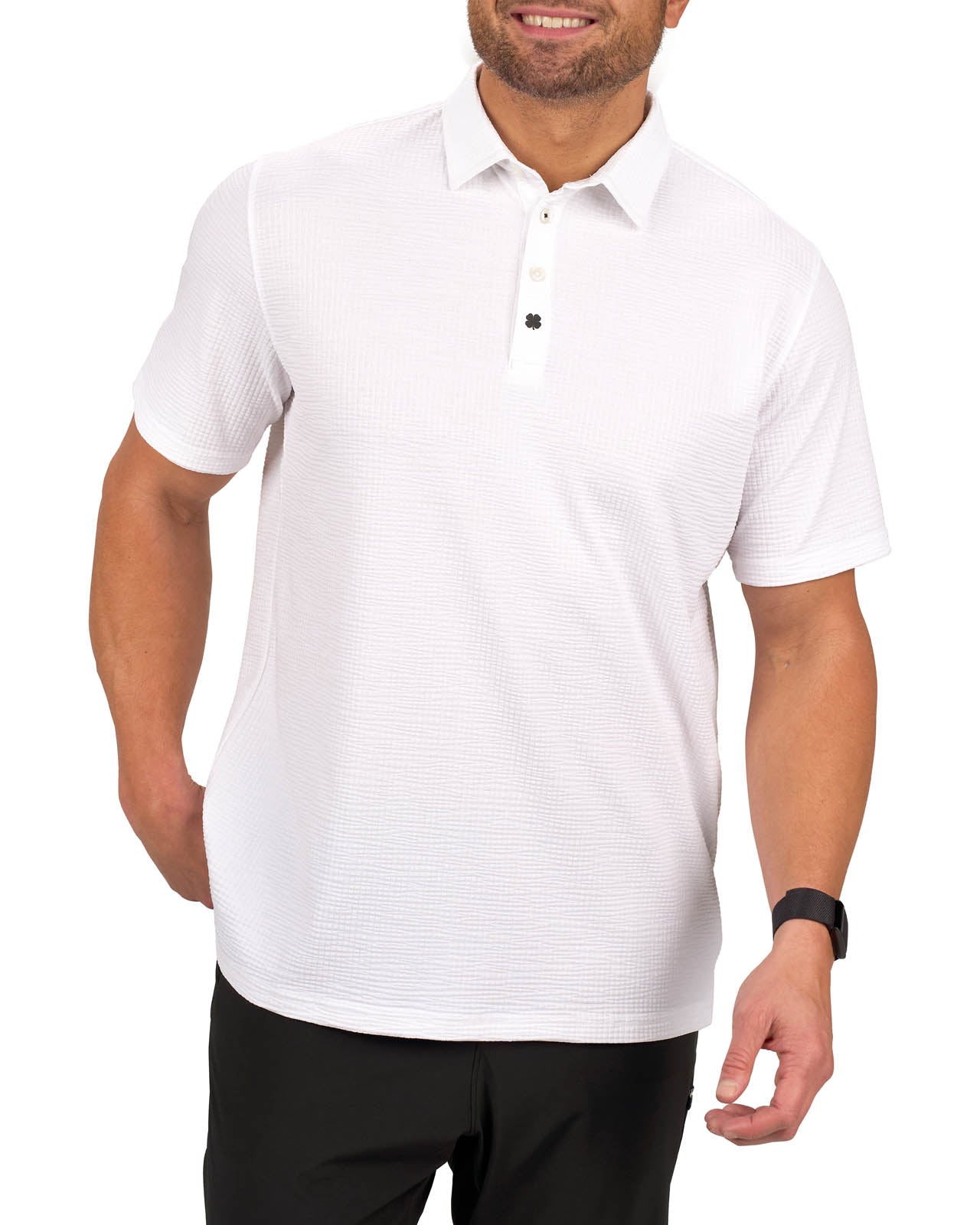 The solid white Marco Polo combines sleek design with premium performance. Made from 100% poly crinkled interlock, it features no-curl rib knit trim for a polished look. With 4-way stretch, moisture-wicking, shape-retention technology, this breathable polo is built for comfort and style for any occasion.