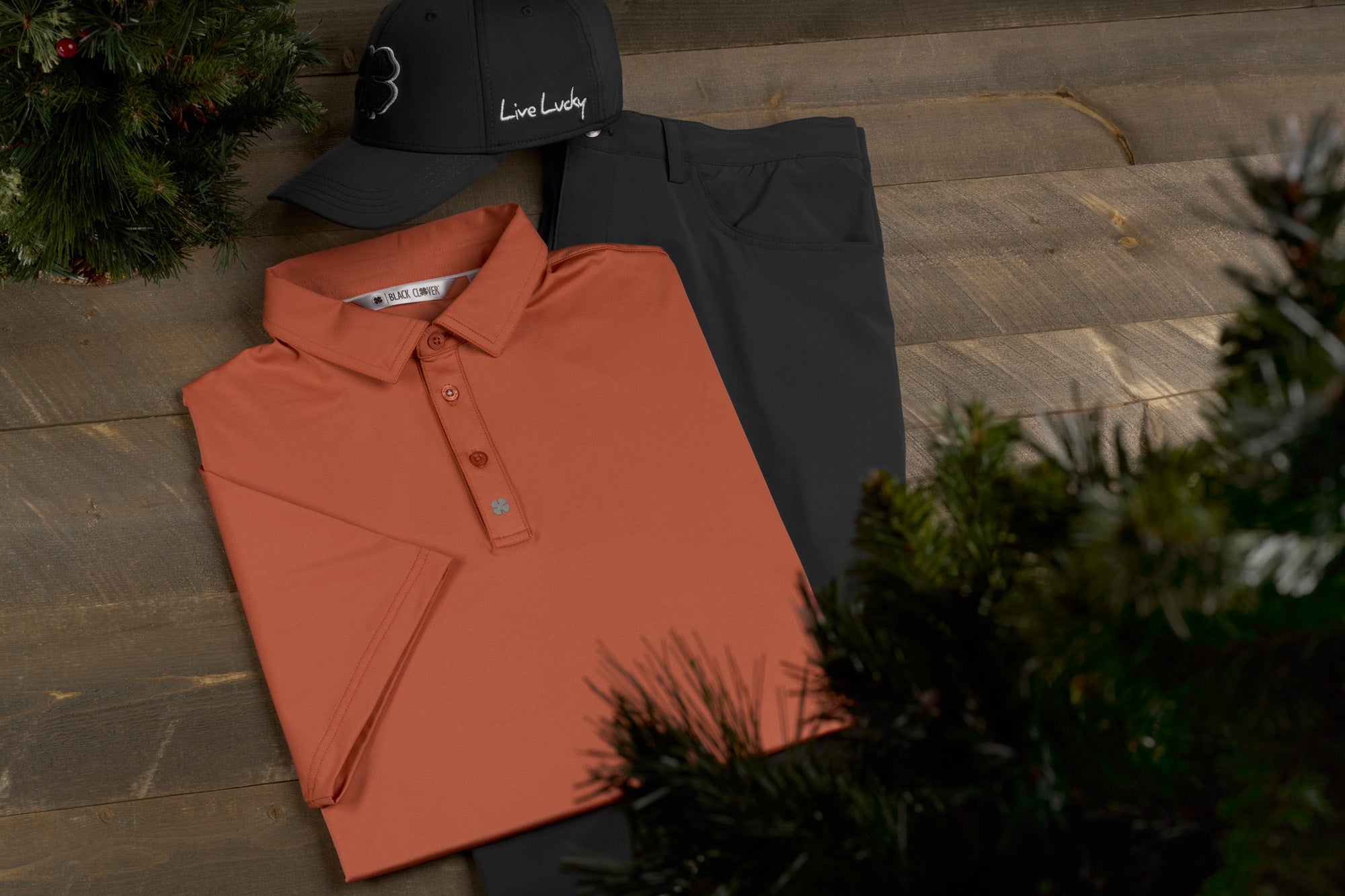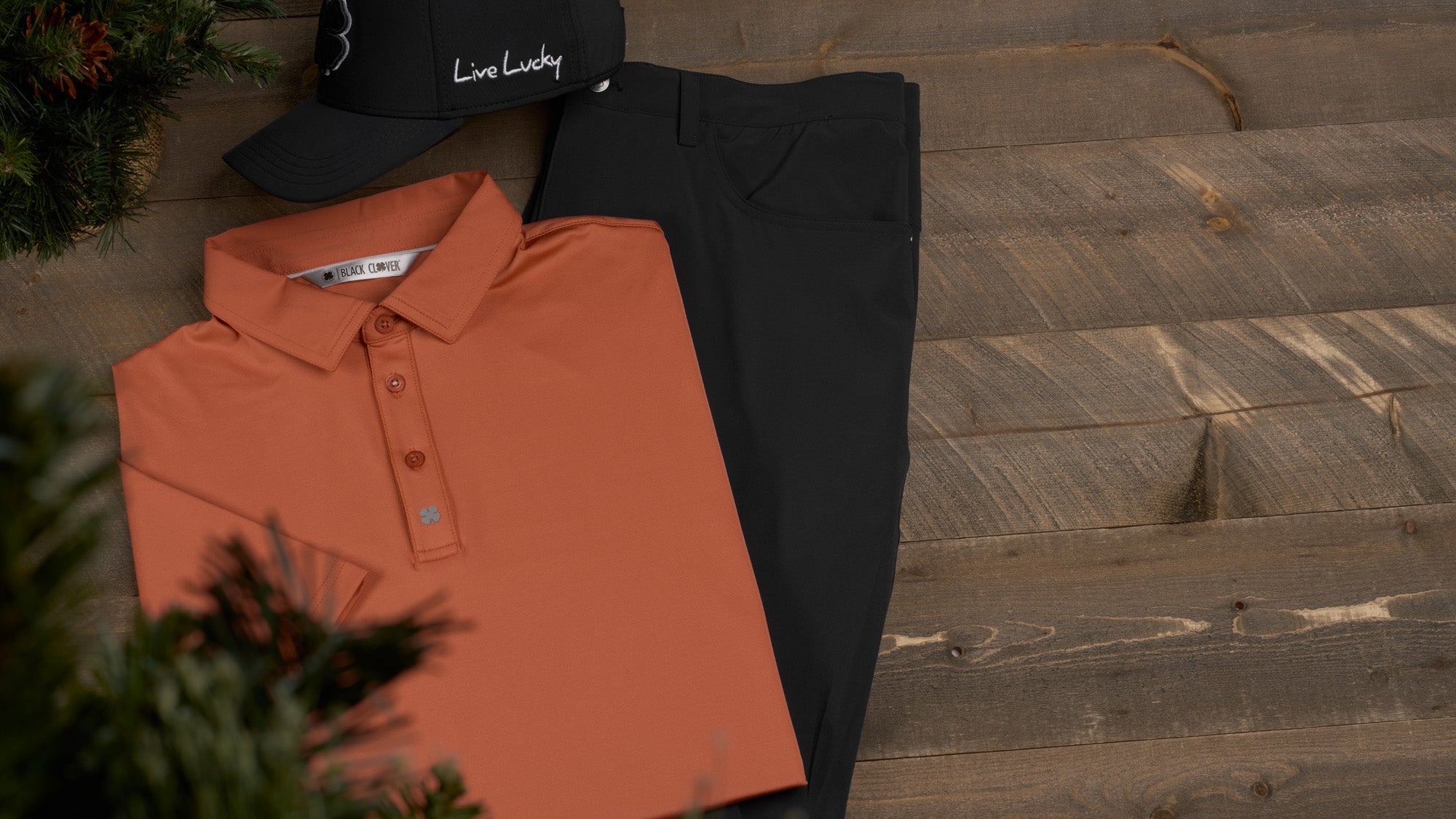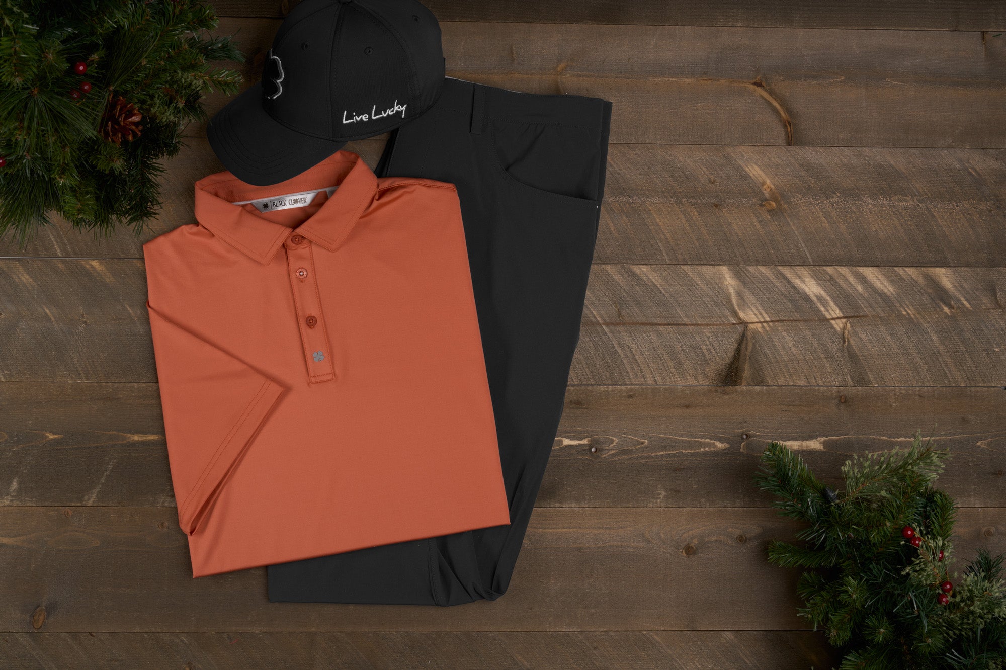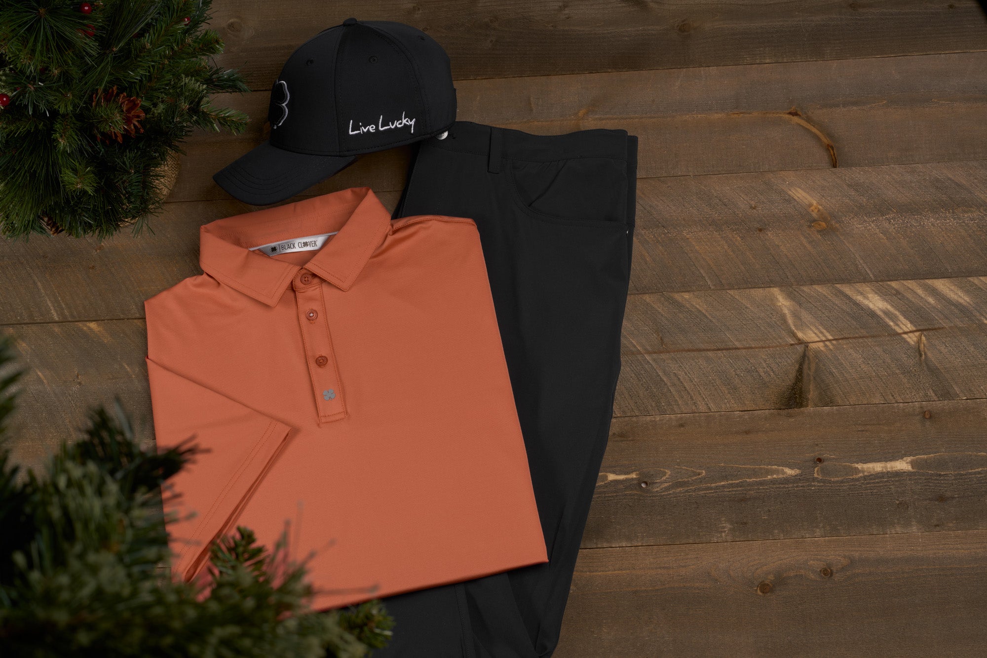 This bundle delivers a refined, ready-to-wear look built on comfort and performance. The Crockett polo in rich brandy offers a soft, breathable fit, ideal for both work and on the golf course. Paired with the pitch black Jack Slacks, you get pants that move effortlessly through any part of your day. Finished with the classic Premium Clover 2 fitted hat, this set brings together timeless style and everyday versatility.