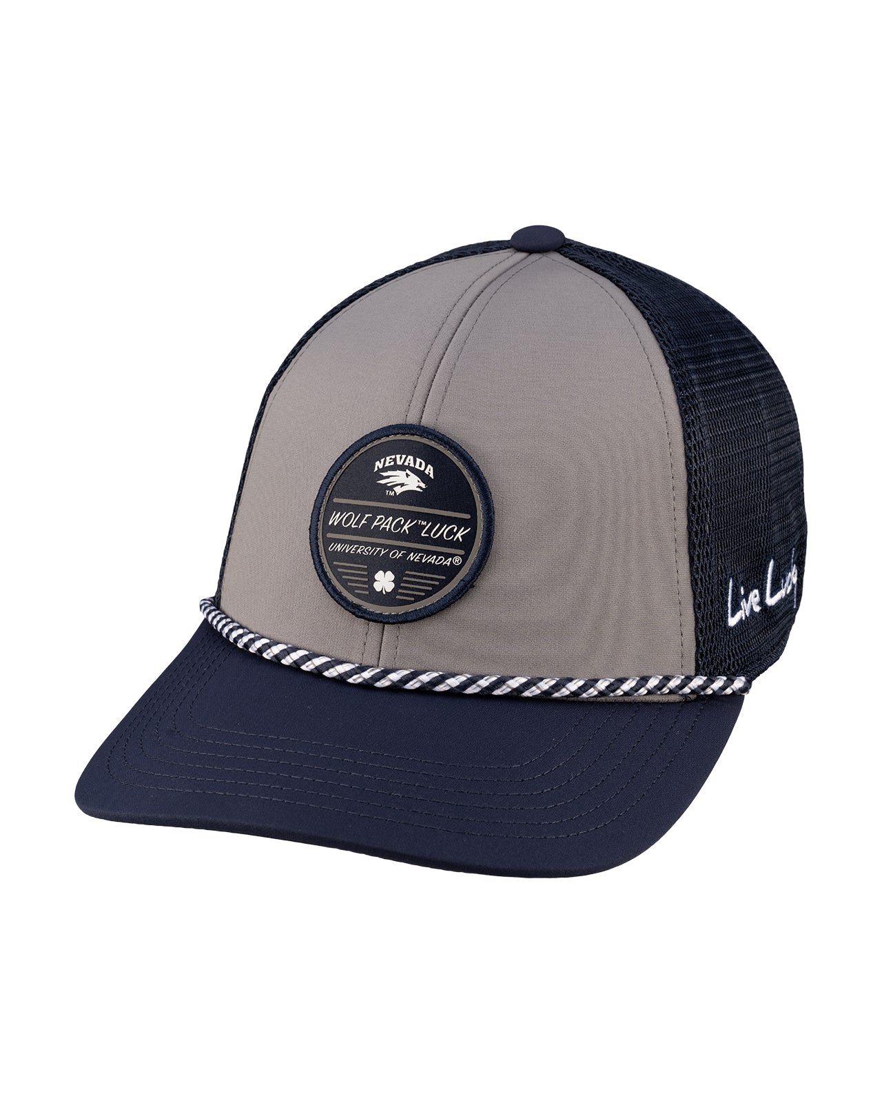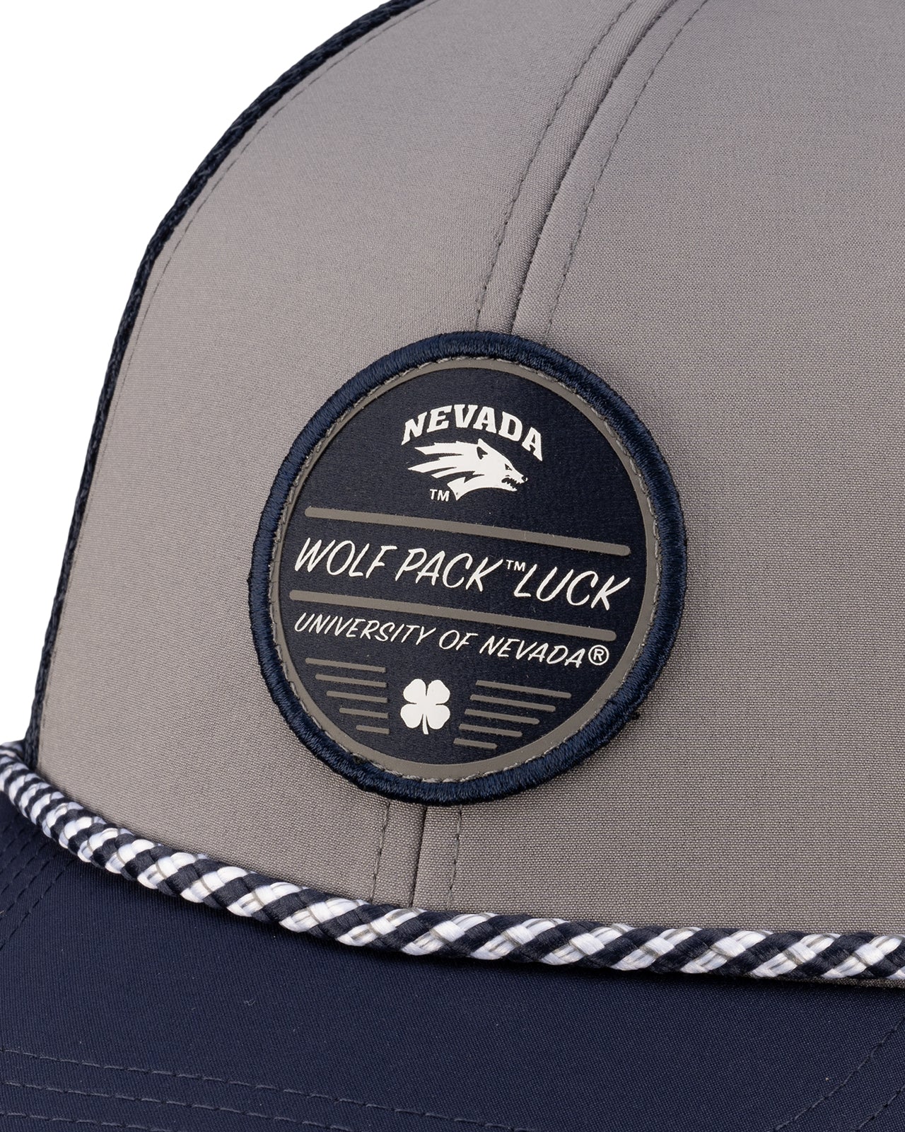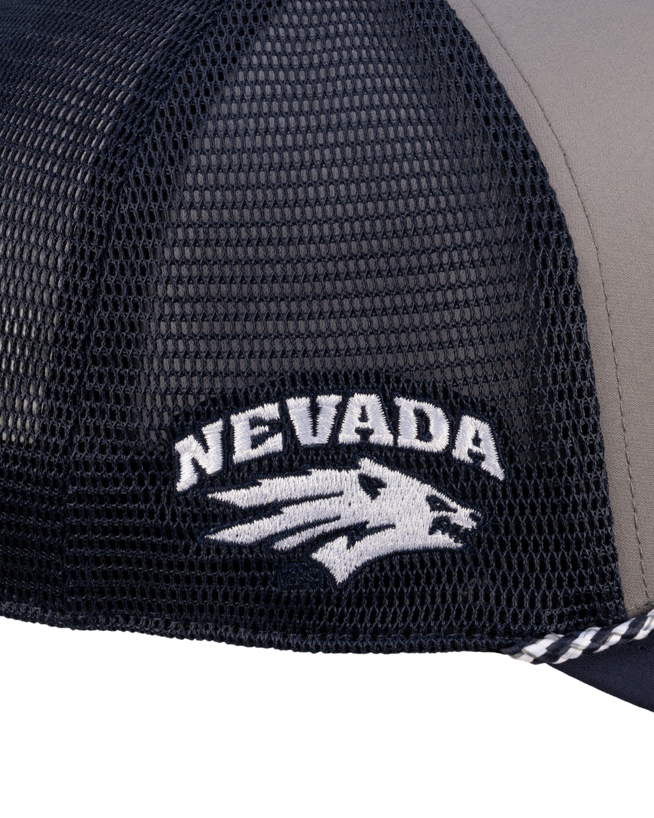 Secure your place in the Wolf Pack with the Nevada-Reno Gamer collegiate headwear. Built with premium quality materials, this eye-catching grey and navy hat features a navy brim and navy mesh for a cool, breathable fit. The front of the hat boasts a patch with a tribute to the Wolves, and the school symbol is proudly displayed on the right panel. With an adjustable snapback to ensure a perfect fit every time, this stylish hat is a perfect way to showcase your team spirit and an ideal addition to any casual wear.