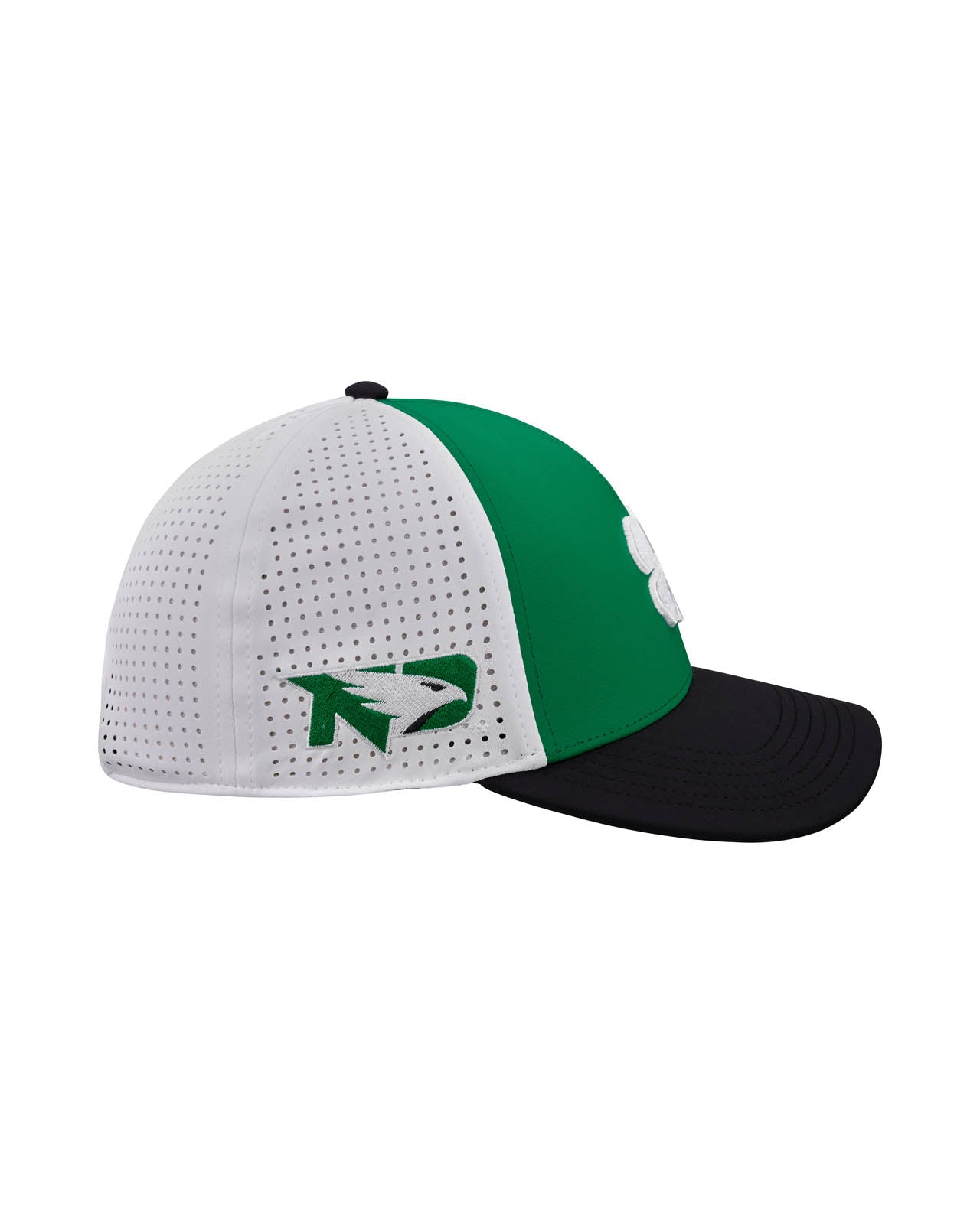 Go Hawks! The North Dakota Benchmark puts Fighting Hawks pride front and center with a green, black, and white laser-cut design topped by a bold white 3D clover. Perforated panels keep you cool from the first puck drop or kickoff to the final whistle, while the ultra-comfortable fit makes this UND snapback your go-to for game days, tailgates, and every moment you rep green and black.