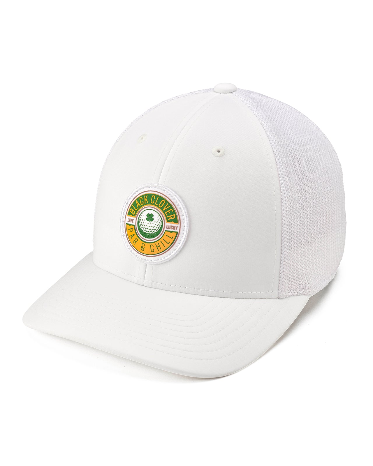 Add a little fun to your wardrobe with our Par and Chill headwear! This cap features a sleek white crown and white mesh back, topped off with a green and yellow HD patch and convenient adjustable snapback closure. Comfortable and stylish, it's perfect for the avid golfer or anyone who wants to add a little fun to their wardrobe.