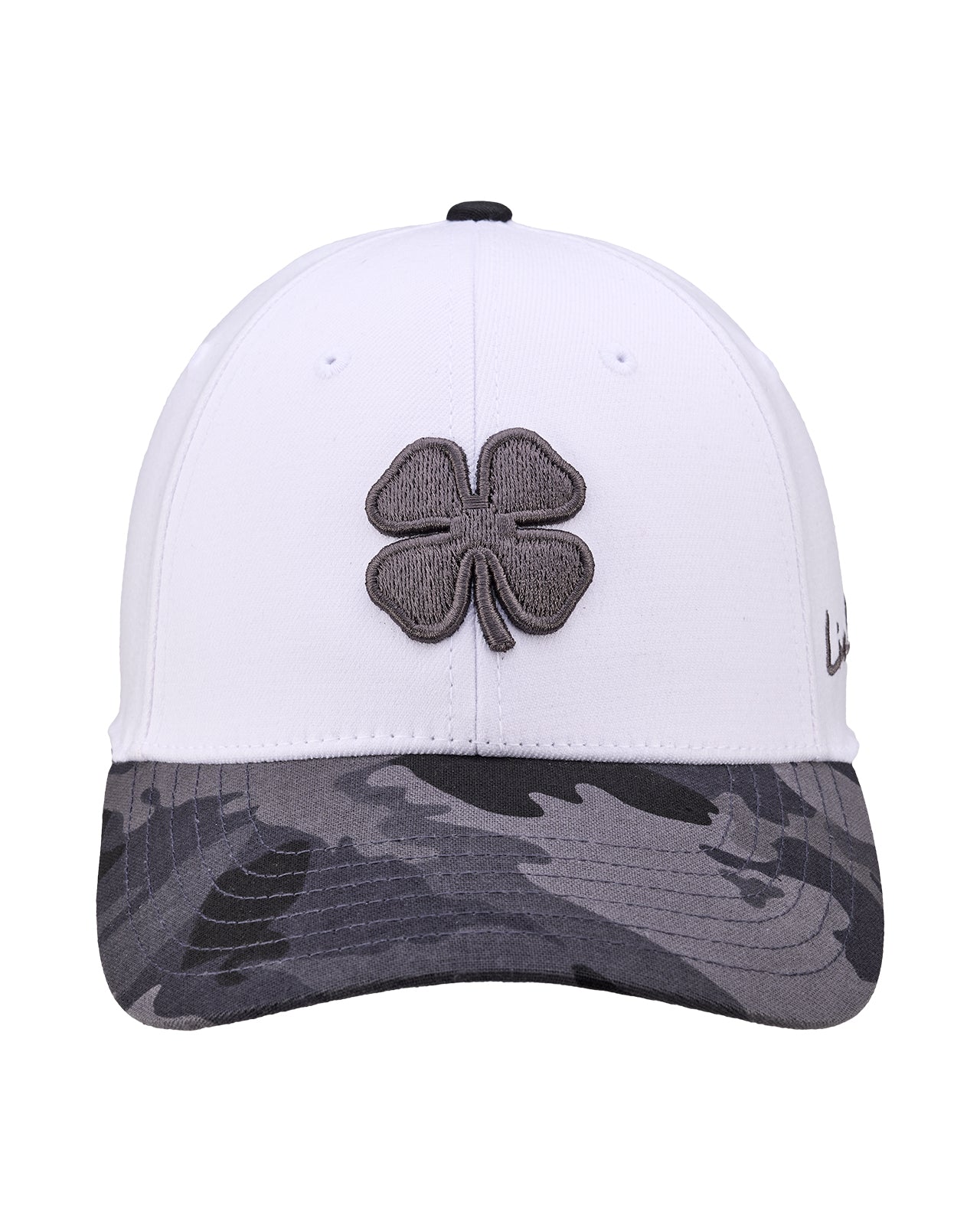 Show your American pride with our white Patriot 5 headwear with a white and charcoal camo brim. Featuring a 3D charcoal clover on the front, this stylish hat offers a patriotic, casual look. Available in two fitted sizes, this versatile headwear ensures the perfect fit every time.