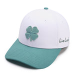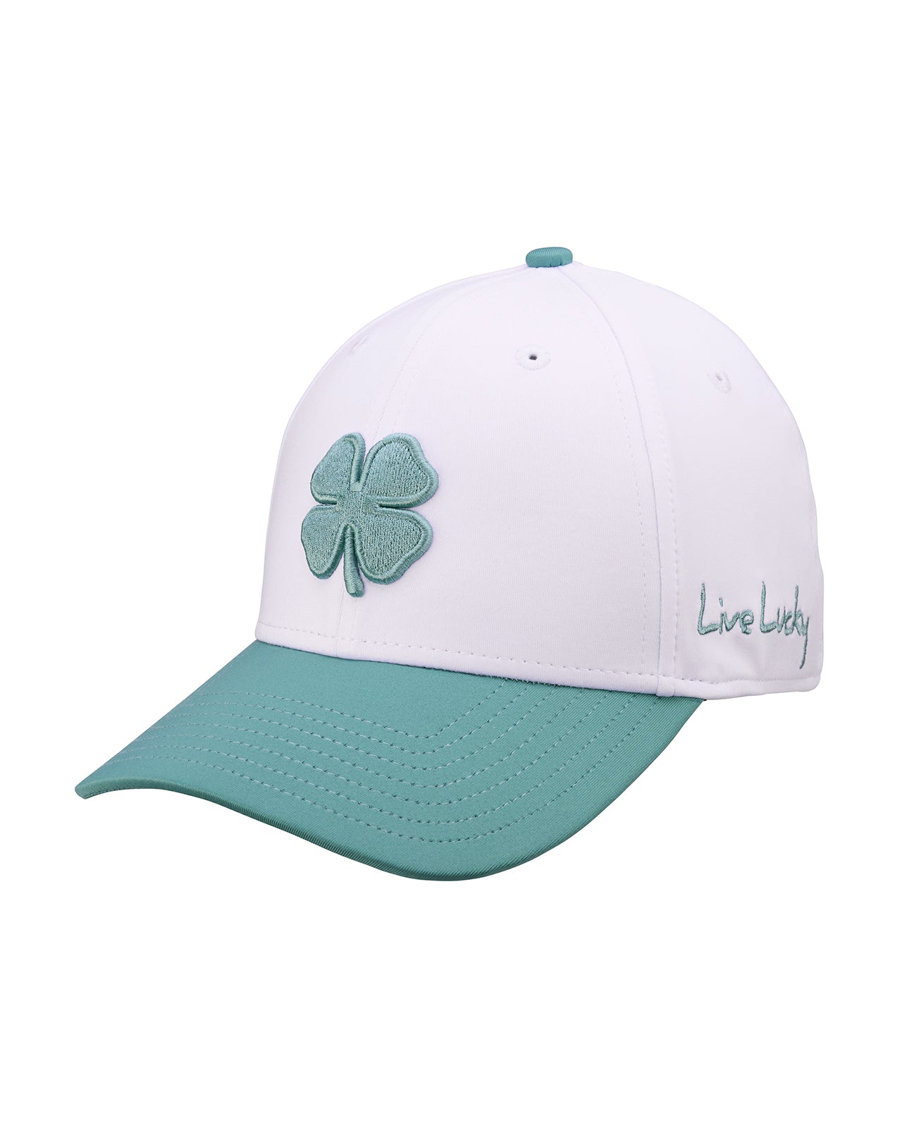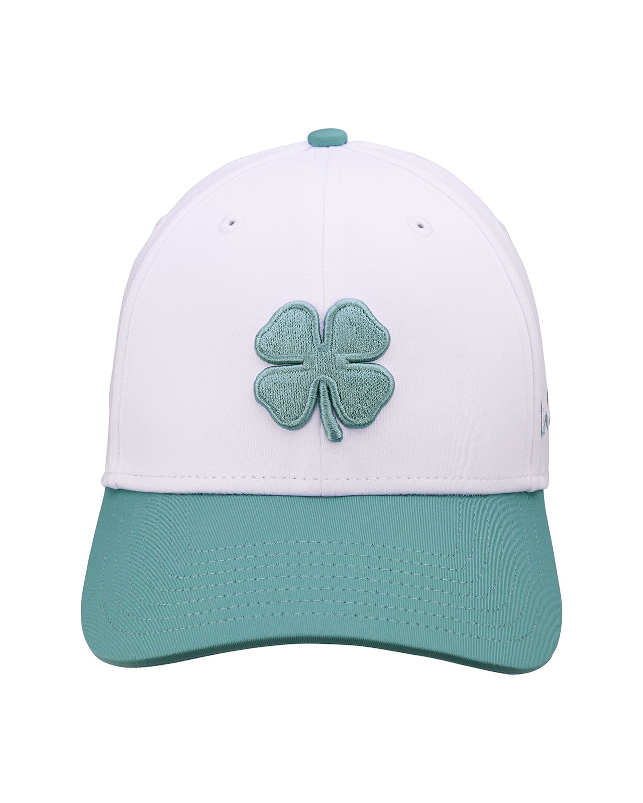 The Premium Clover 179 is our iconic white and jade green fitted hat built for both style and performance. It is crafted with moisture-wicking fabric to keep you dry and an A Flex headband that adapts for a flawless fit, delivering the all day comfort you need in a hat. Finished with our signature green 3D embroidered clover and a multi colored rope detail, this fitted golf hat blends timeless design with a modern edge. It is versatile, durable, and unmistakably sharp for every outfit you pair with it.