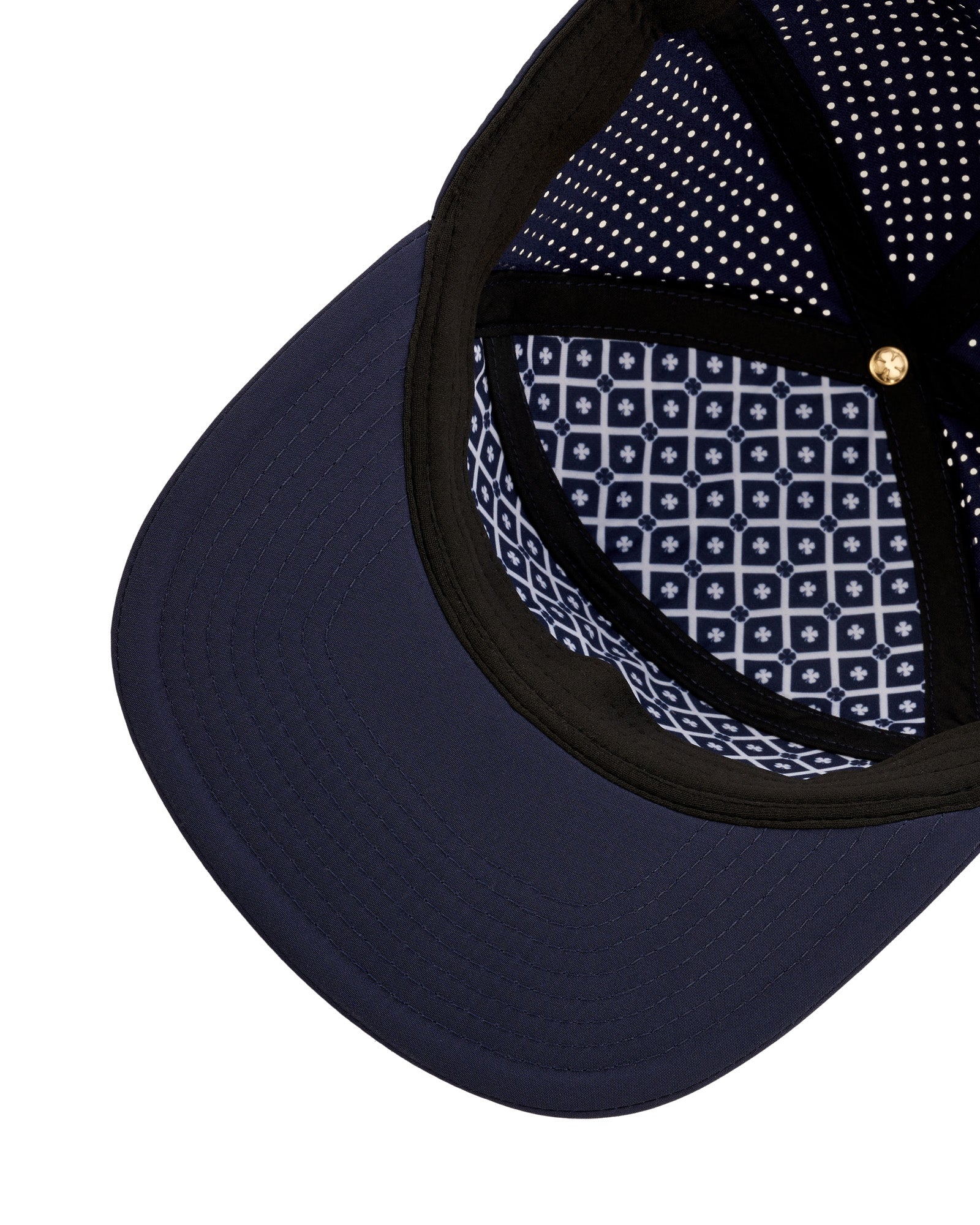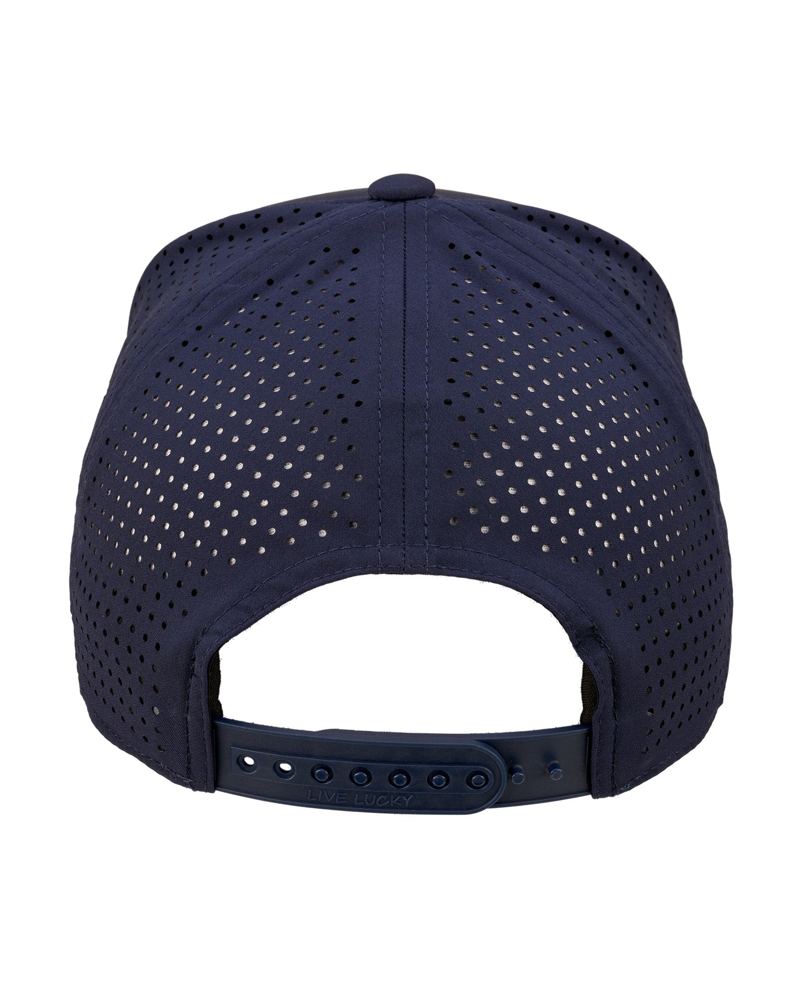 Named for our ambassador, pro golfer Doc Redman, our Redman 3 features his favorite flat brim style. In sleek navy with a 3D white clover, this five-panel arch adjustable snapback will keep you stylish, on-trend, and looking like a pro. Perfect for the golf course or for a night on the town.