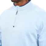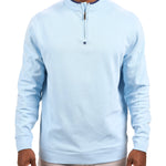 Introducing the Rip Q Quarter-Zip Pullover in Cerulean Blue, crafted from premium cotton. This pullover ensures all-day comfort with high moisture transportation, shape retention technology, breathability, and antimicrobial properties. Perfect for staying fresh and stylish, no matter where your day takes you.