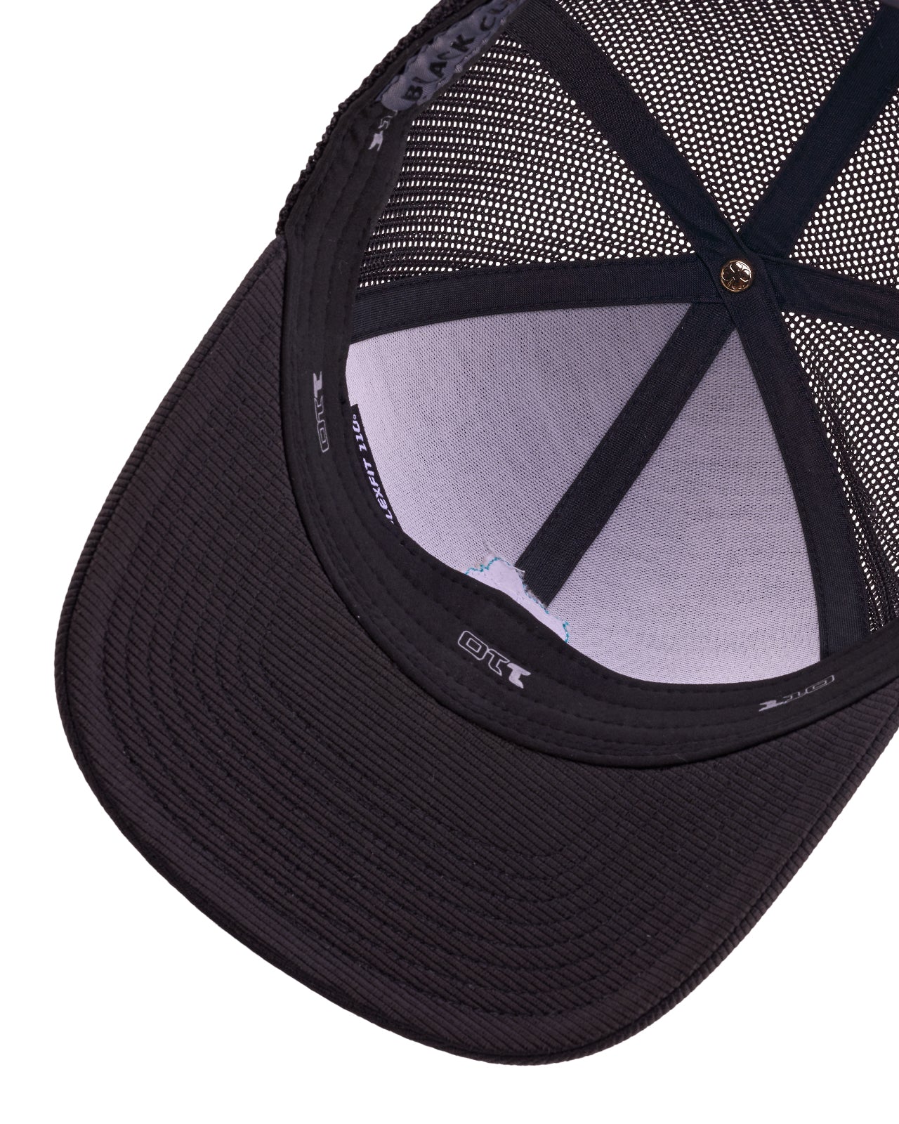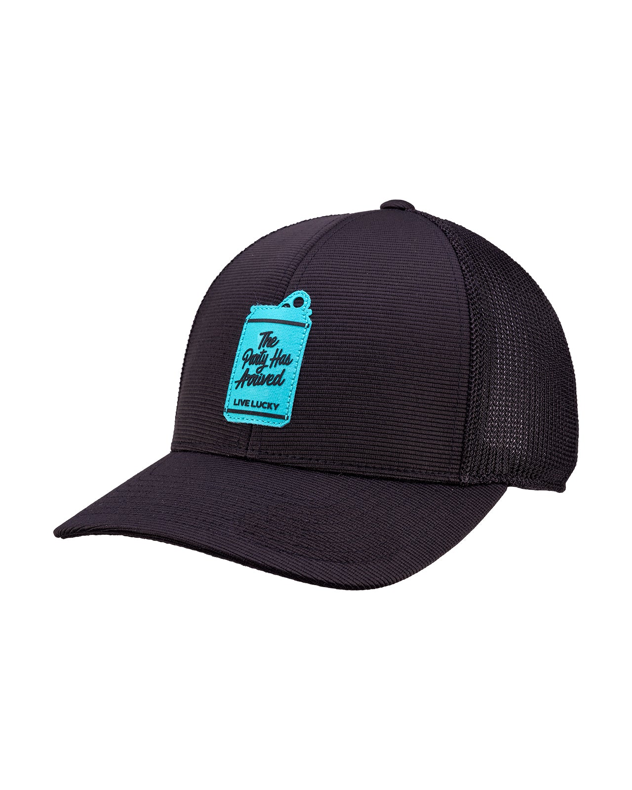 Party with Rowdy 4, a unisex snapback cap made from black performance material for optimal breathability. The hat boasts a blue woven patch with HD Printand advanced moisture-wicking technology to keep you cool and comfortable!