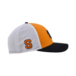 Go Orange! The Syracuse Benchmark puts Orange pride front and center with an orange, navy, and white laser-cut design topped by a bold black 3D clover. Perforated panels keep you cool from the first whistle to the final play, while the ultra-comfortable fit makes this Syracuse University snapback your go-to for game days, tailgates, and every moment you rep orange and navy.