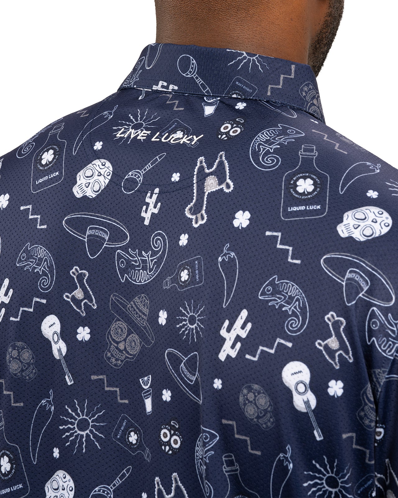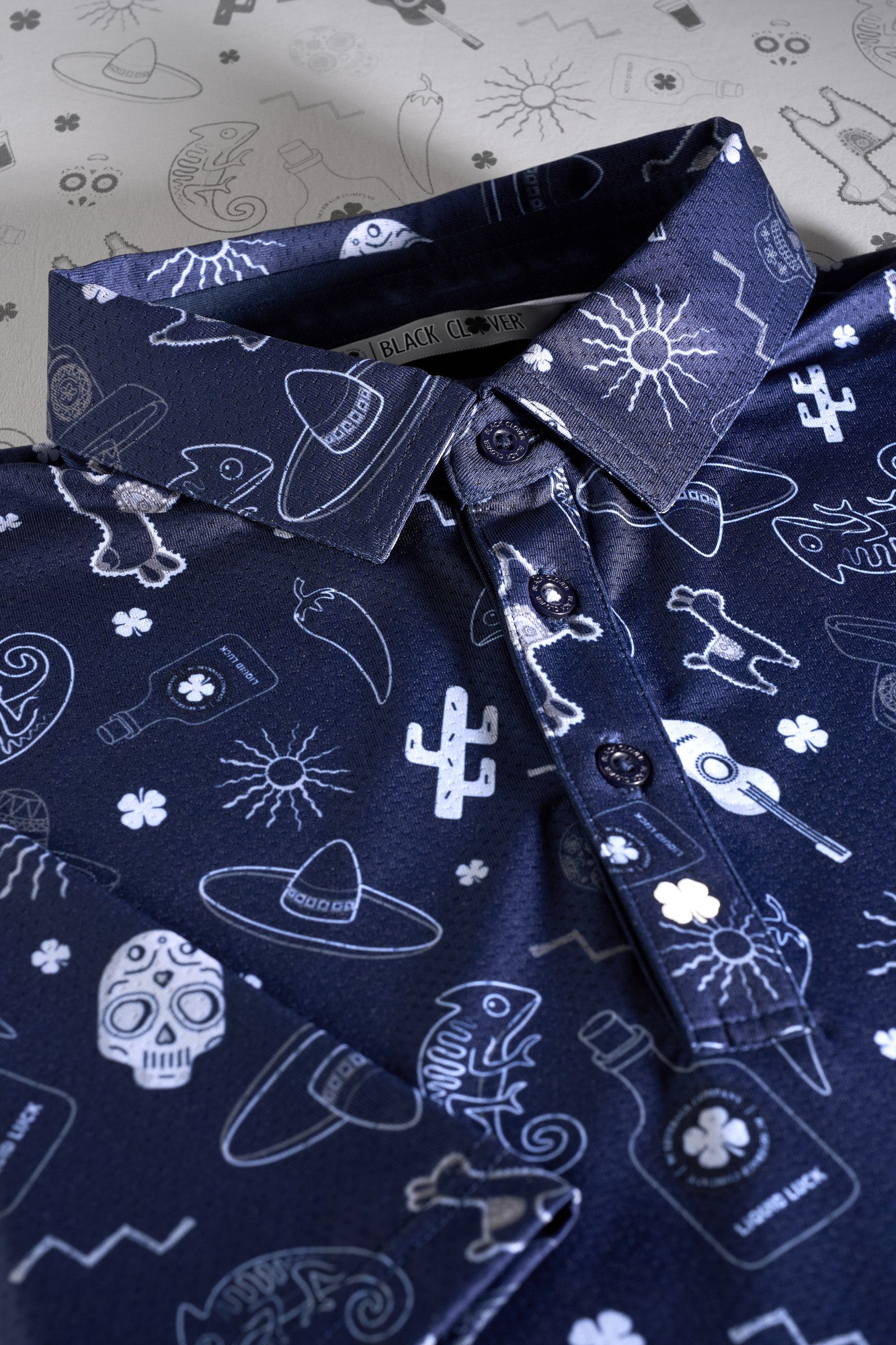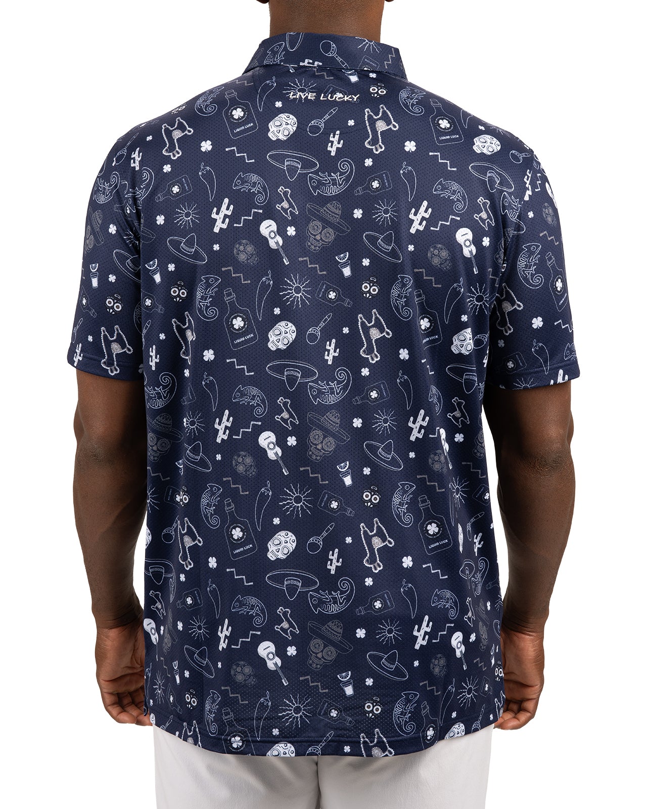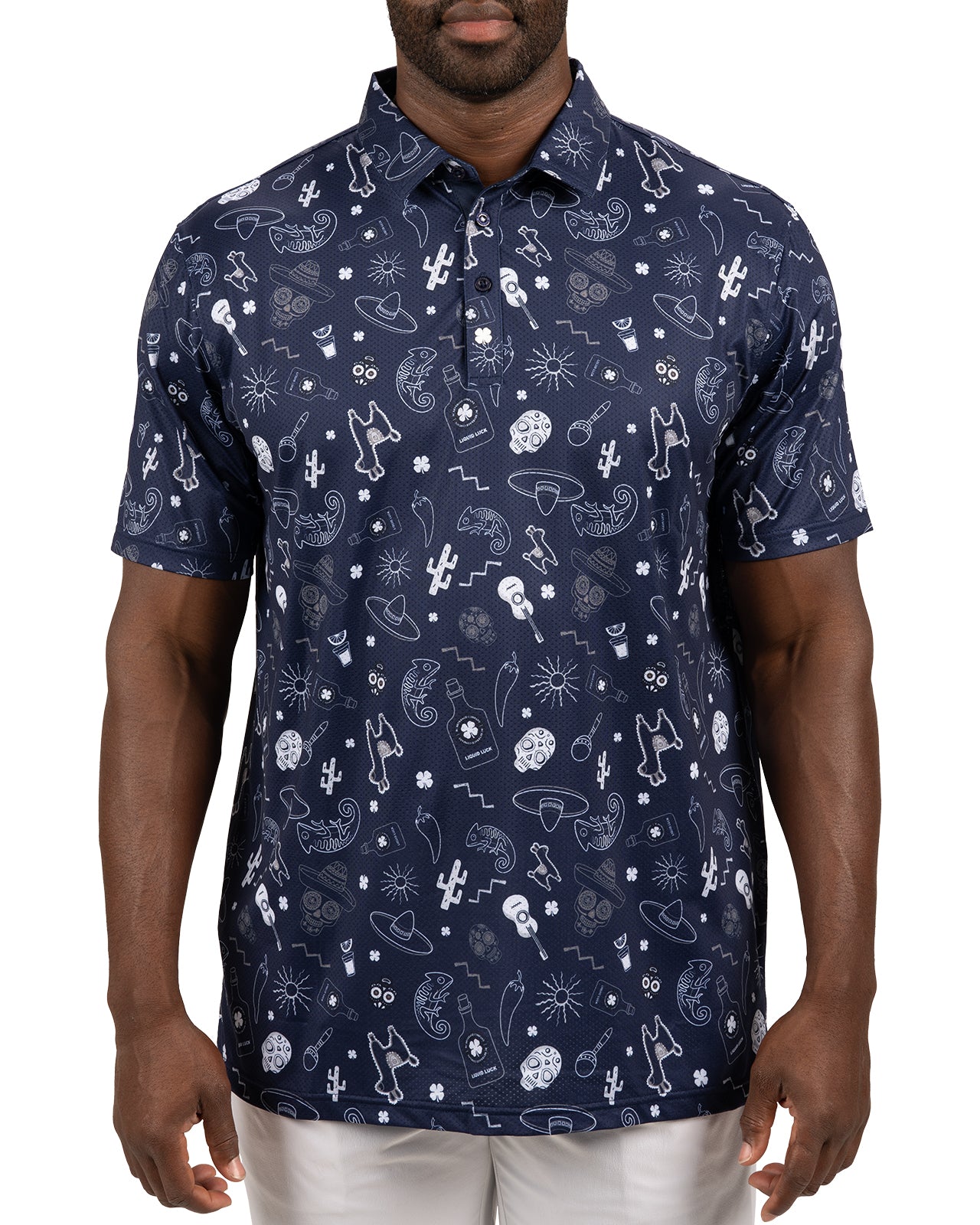 Our Taco Tuesday polo in navy features white embellishments with icons perfect for a fiesta. Crafted from a poly blend performance mesh, it offers breathability, moisture-wicking capabilities, and 4-way stretch. With low shrinkage and shape retention technology, it’s your go-to for all-day comfort and style.