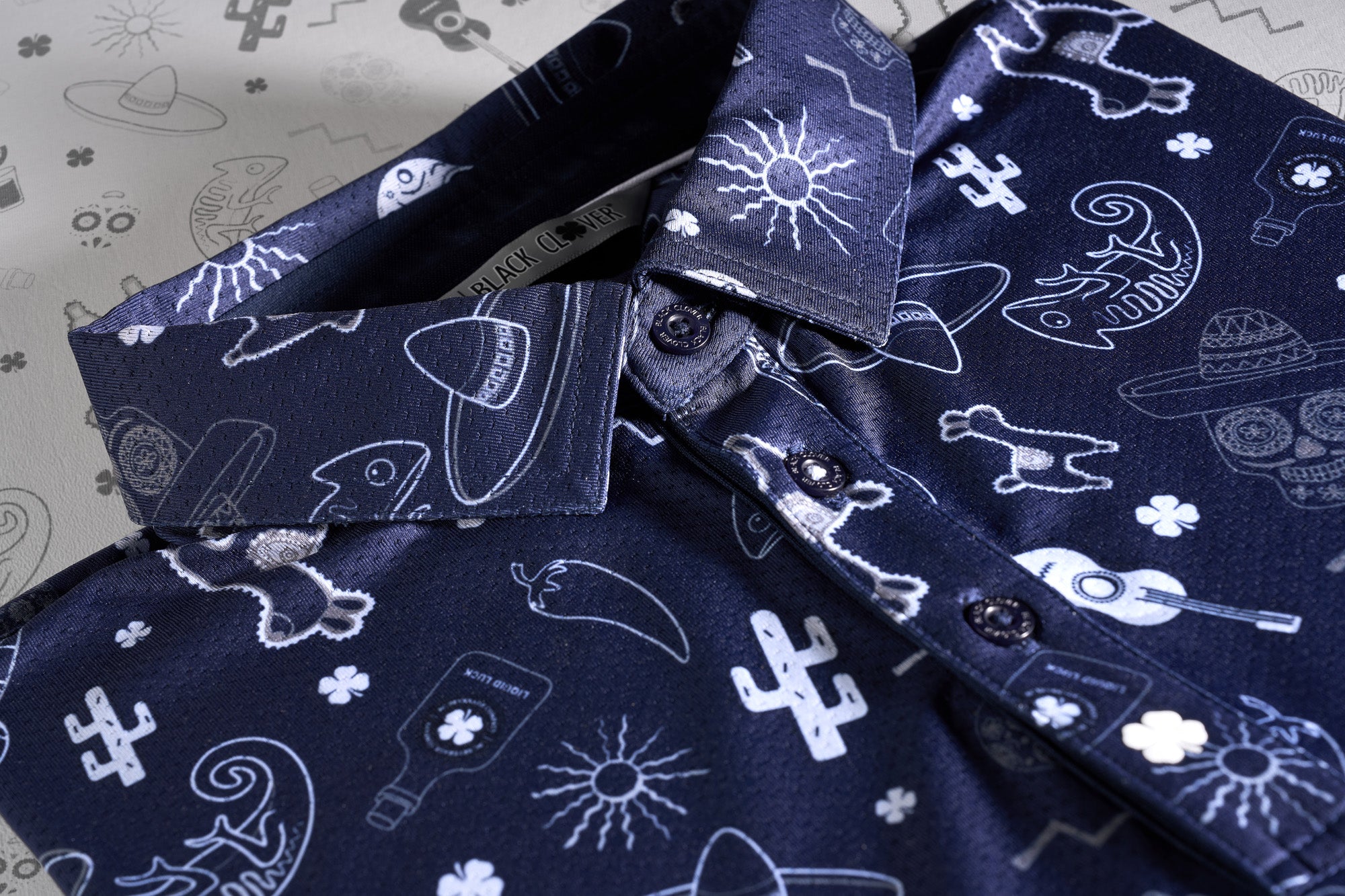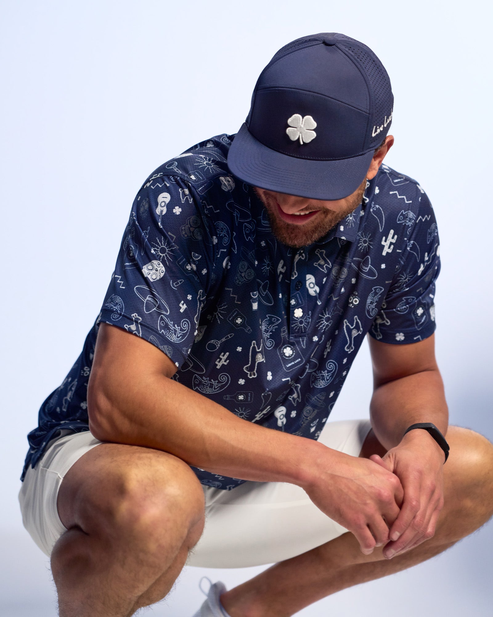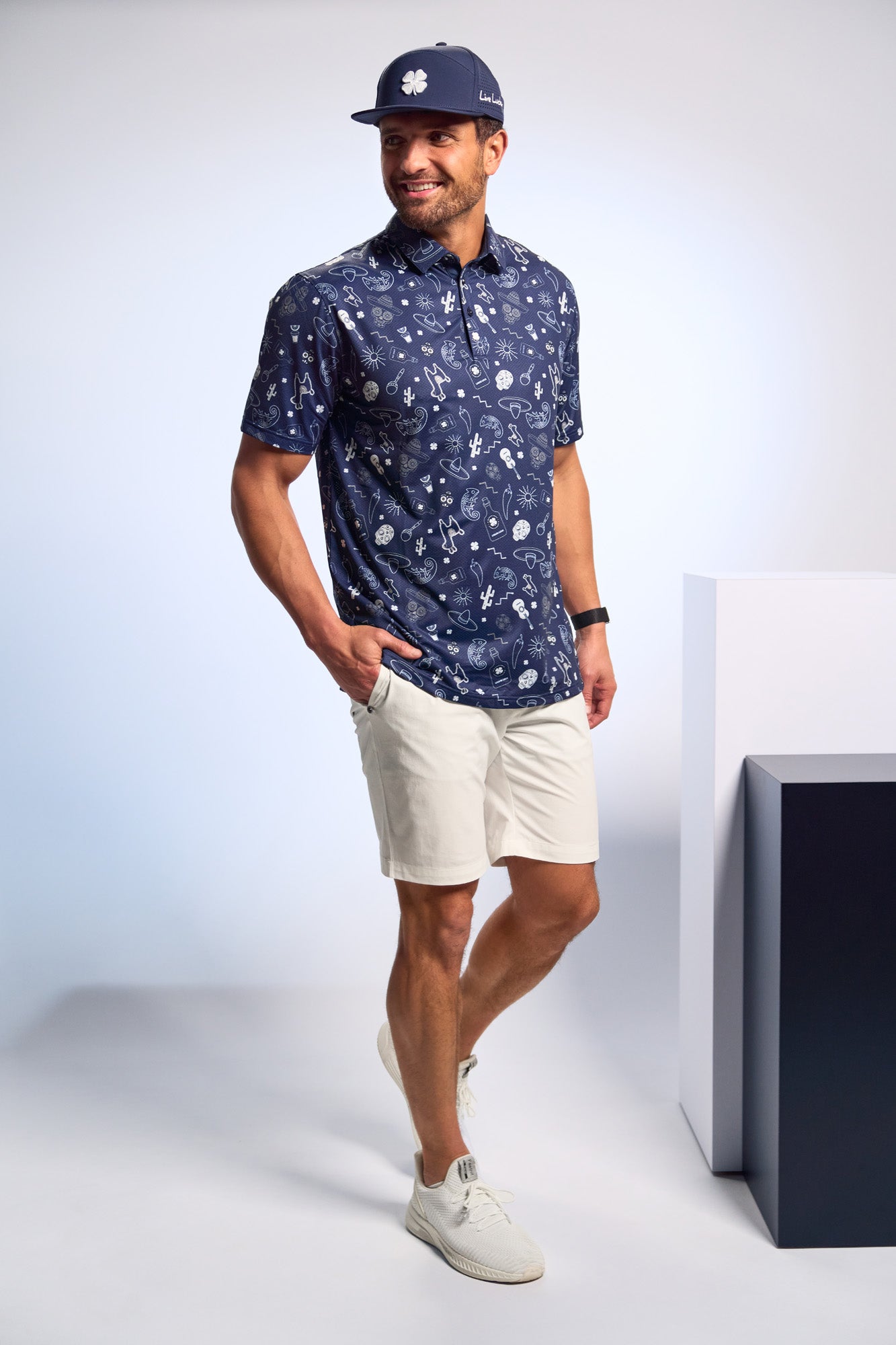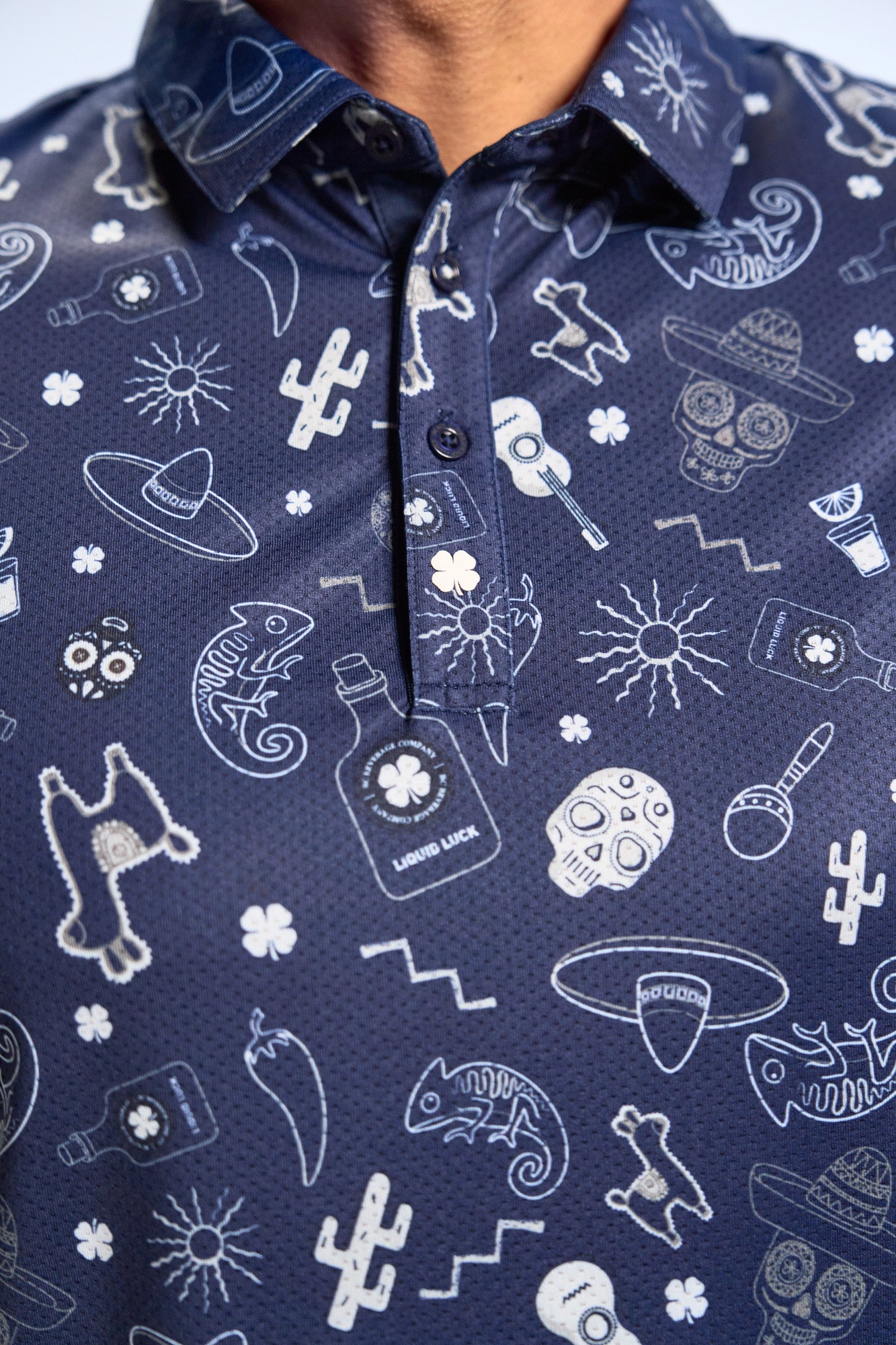 Our Taco Tuesday polo in navy features white embellishments with icons perfect for a fiesta. Crafted from a poly blend performance mesh, it offers breathability, moisture-wicking capabilities, and 4-way stretch. With low shrinkage and shape retention technology, it’s your go-to for all-day comfort and style.