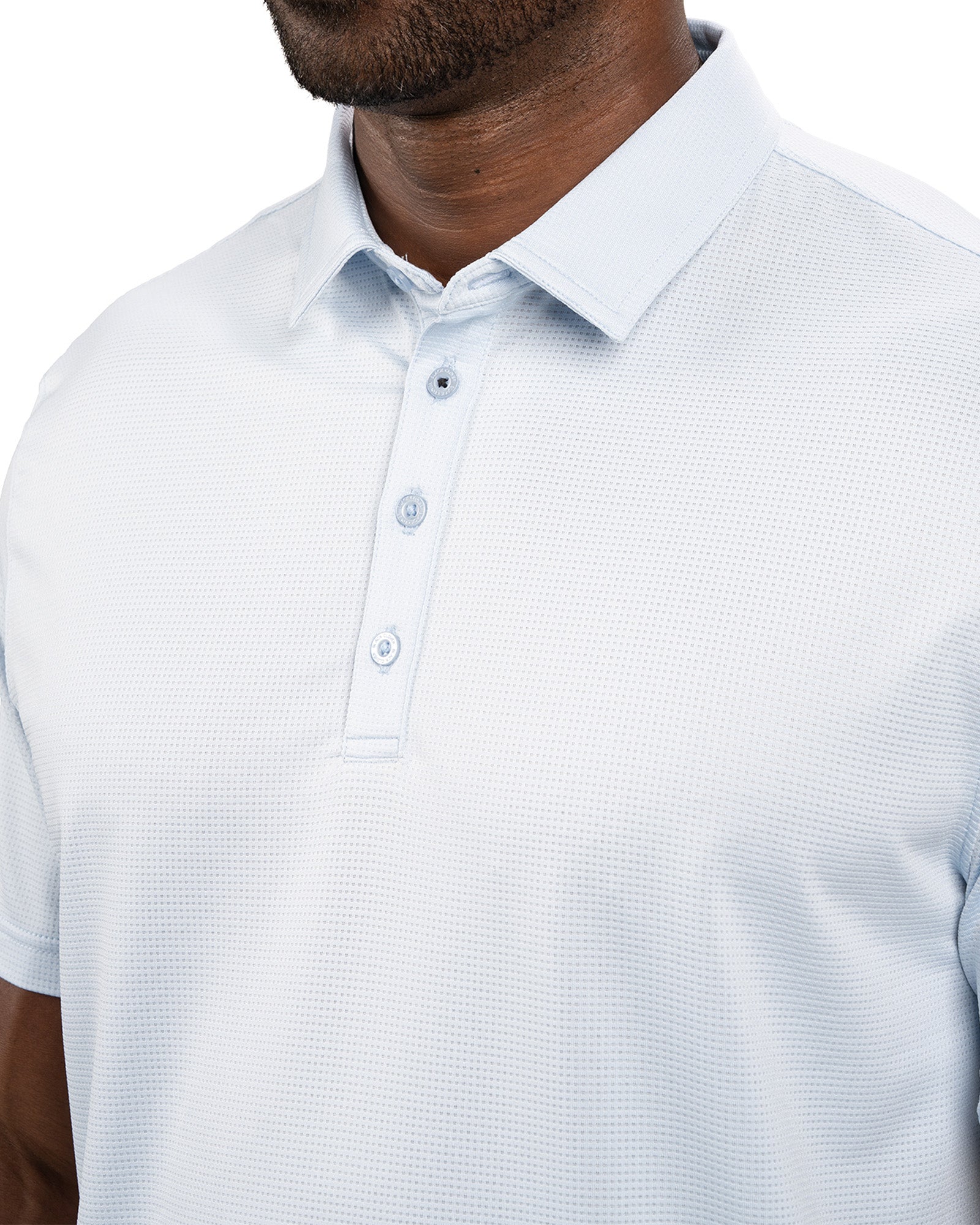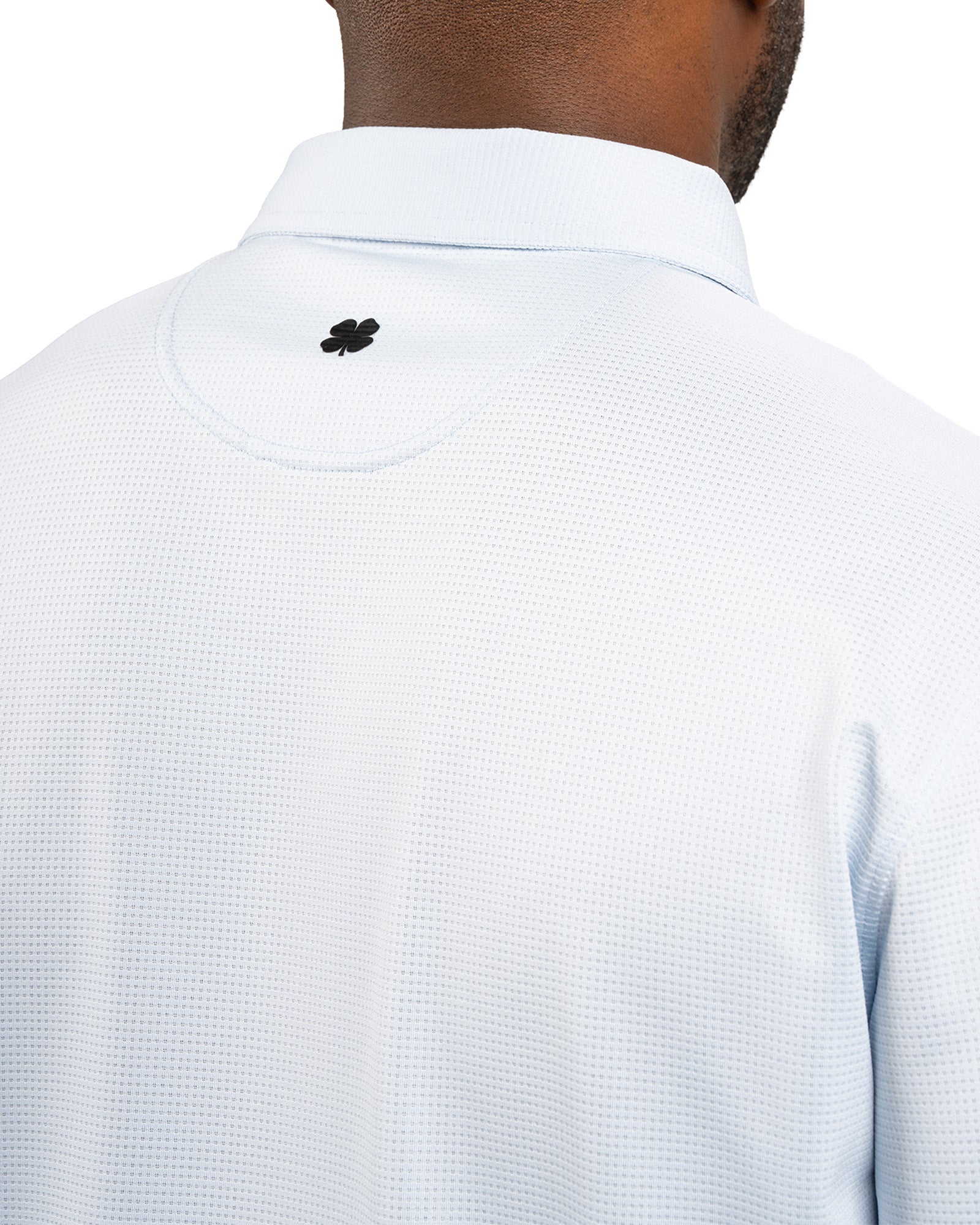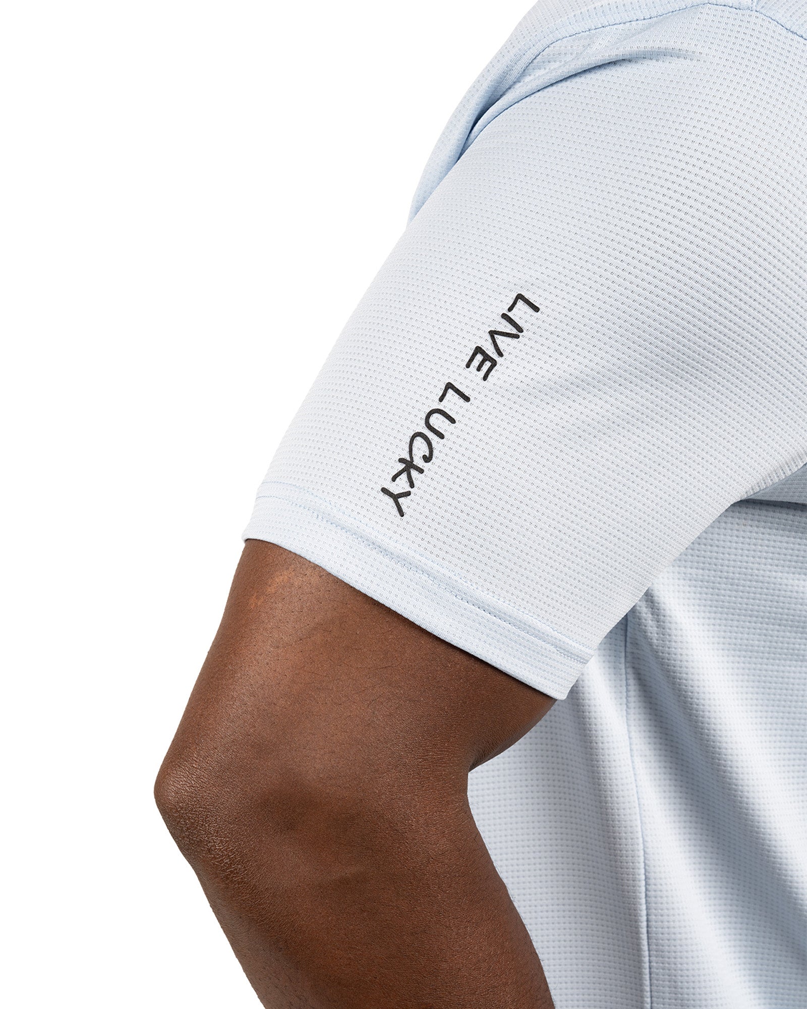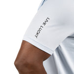 The Tubbs ice blue polo combines sleek style with advanced performance. Made from Syntrel spandex double knit stretch, it offers 4-way stretch, breathable moisture-wicking, and shape retention. With low shrinkage, wrinkle-free tech, and “Live Lucky” on the sleeve, it’s perfect for the boardroom or the course.