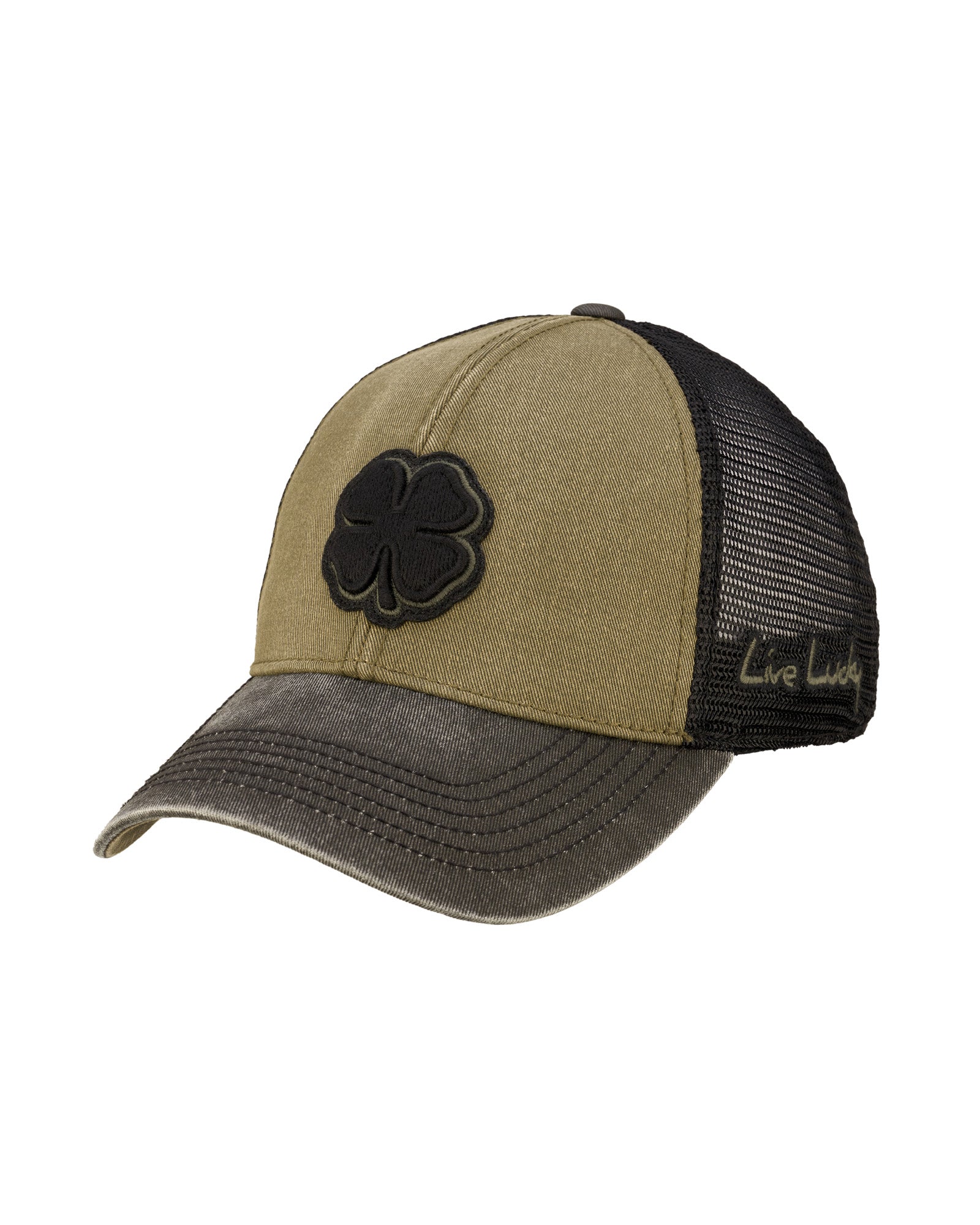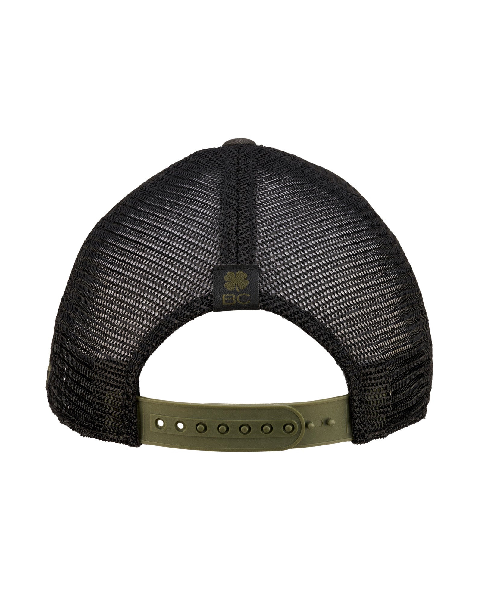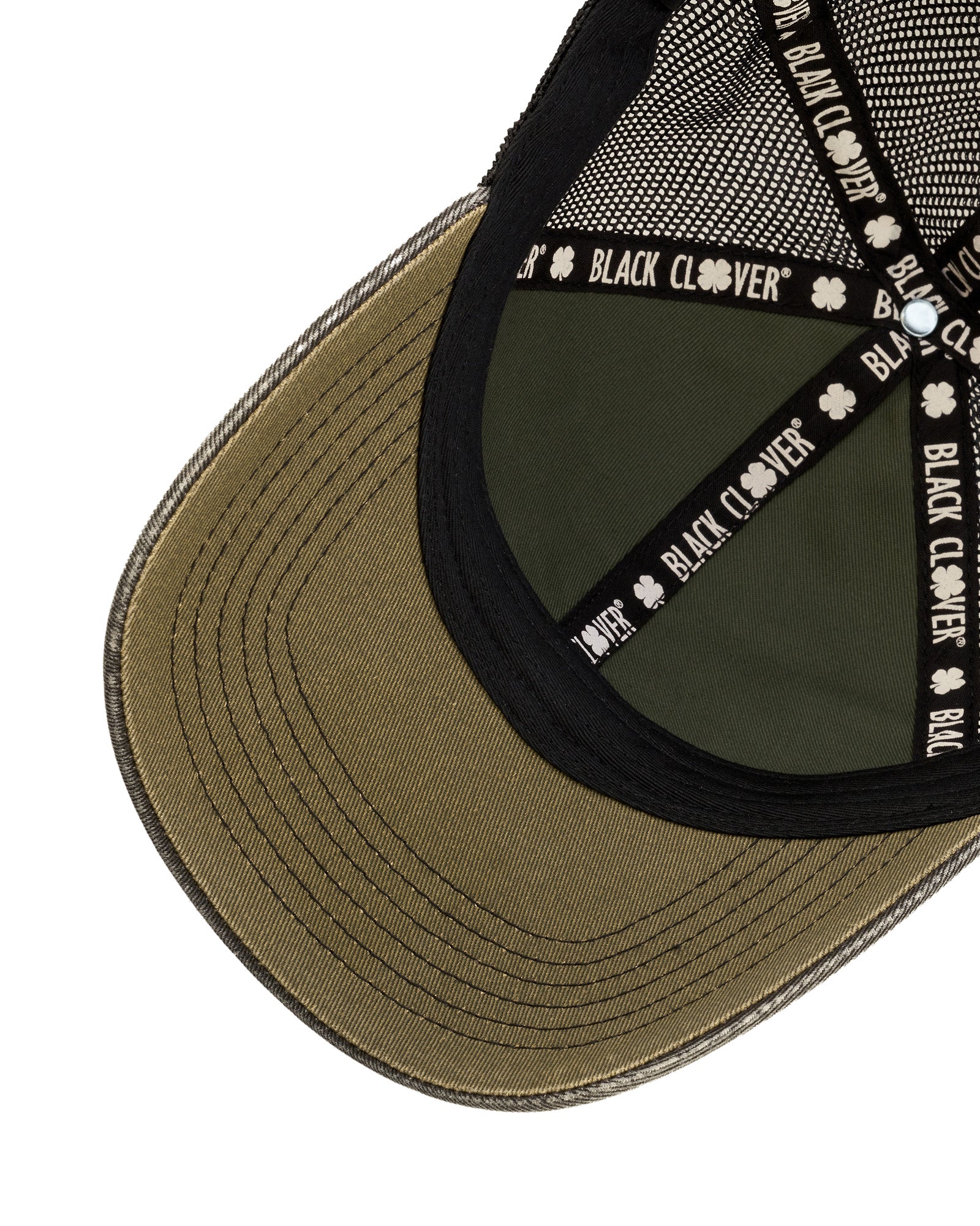 Bring back a retro vibe with our Two-Tone Vintage 32 headwear. Made from vintage-washed cotton, this army green hat features black mesh for a breathable fit. The front showcases our iconic black clover outlined in army green, while the adjustable snapback ensures a perfect fit for any casual look.