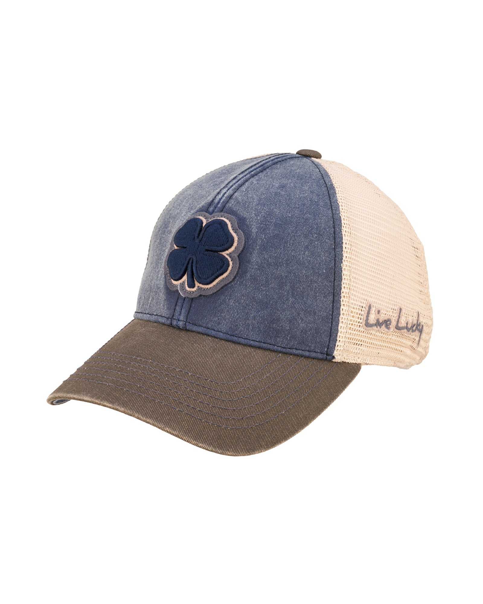 Bring back a retro vibe with our Two-Tone Vintage 33 headwear. Made from vintage-washed cotton, this navy hat features a brushed black brim and cream mesh for a breathable fit. The front showcases our iconic navy clover outlined in cream, while the adjustable snapback ensures a perfect fit for any casual look.