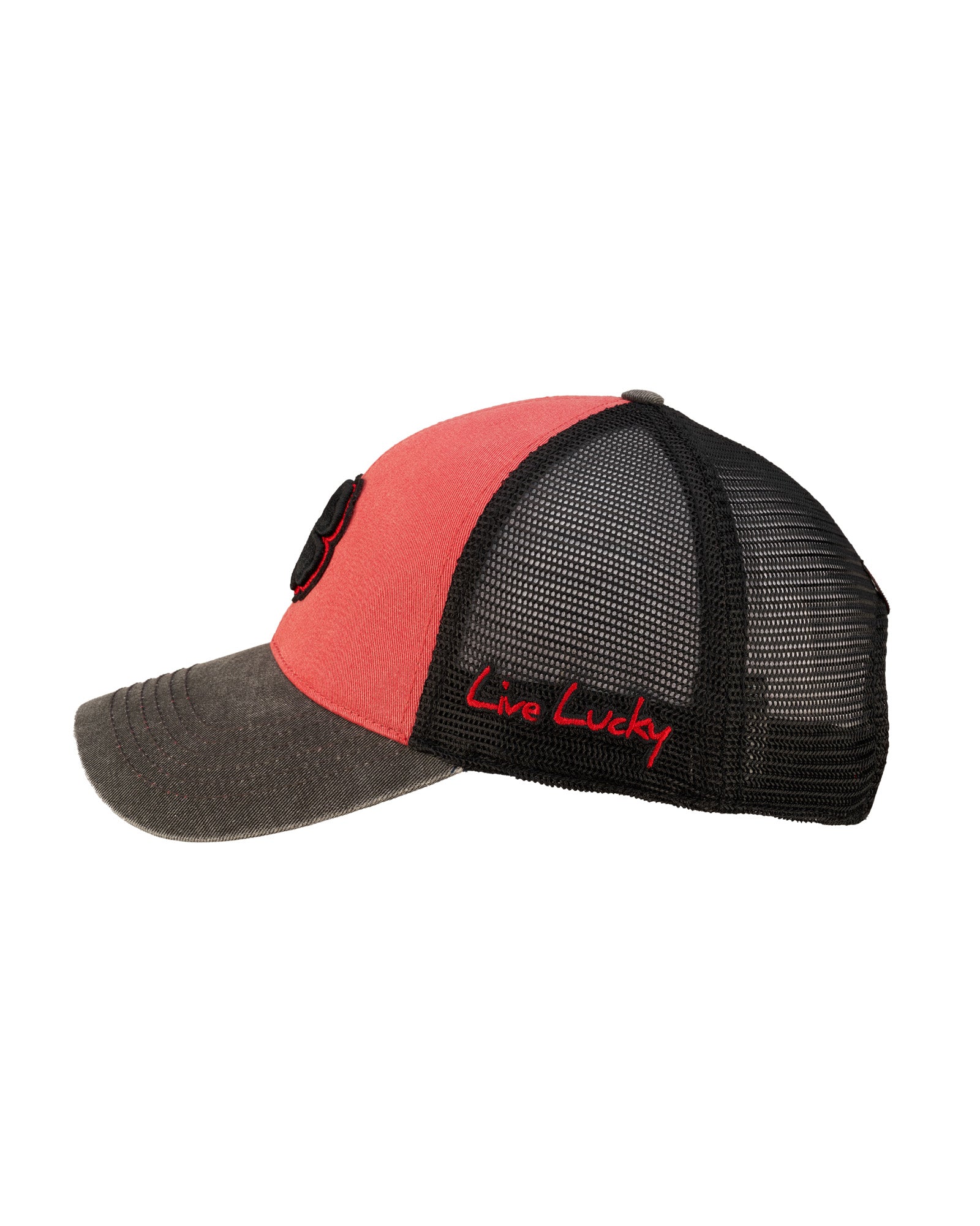 Bring back a retro vibe with our Two-Tone Vintage 34 headwear. Made from vintage-washed cotton, this red hat features a brushed black brim and black mesh for a breathable fit. The front showcases our iconic black clover outlined in red, while the adjustable snapback ensures a perfect fit for any casual look.