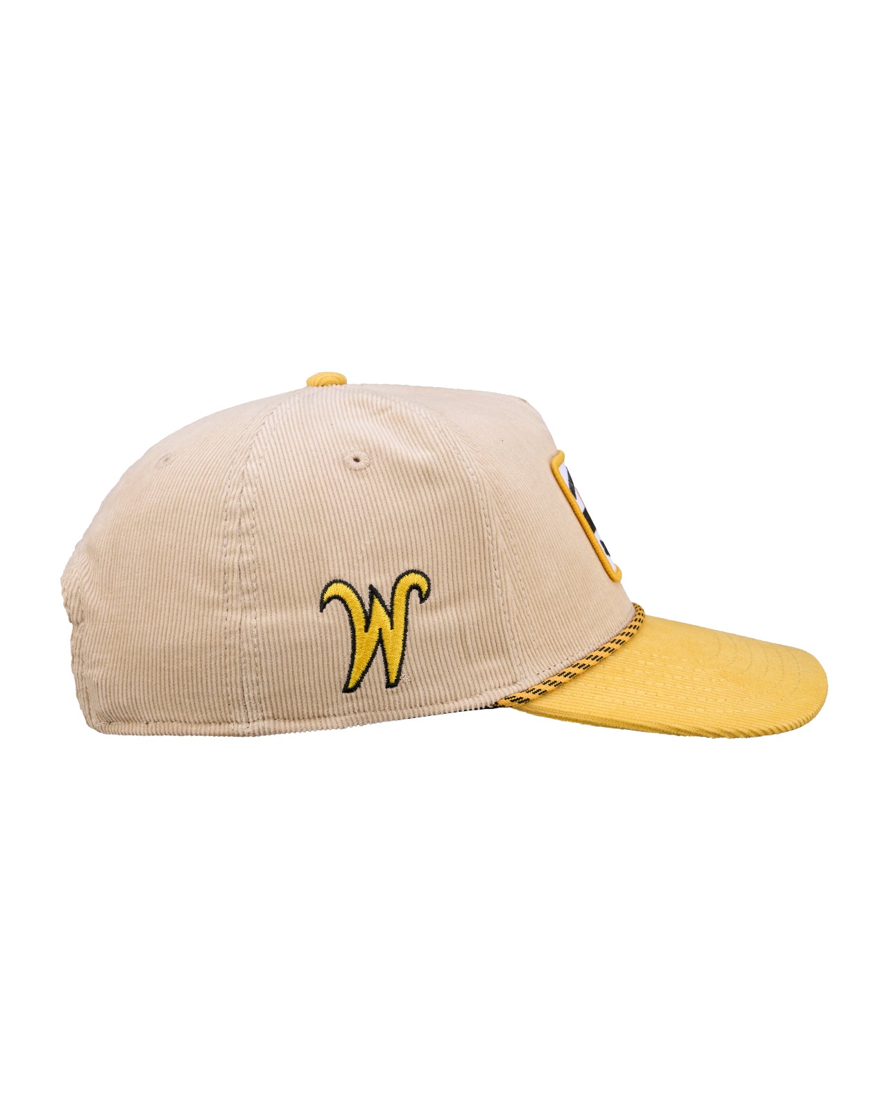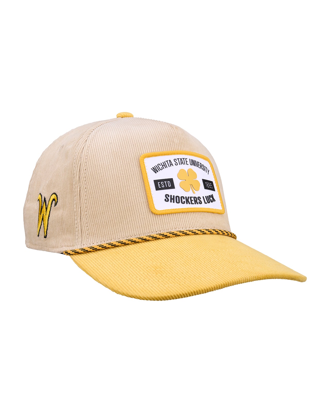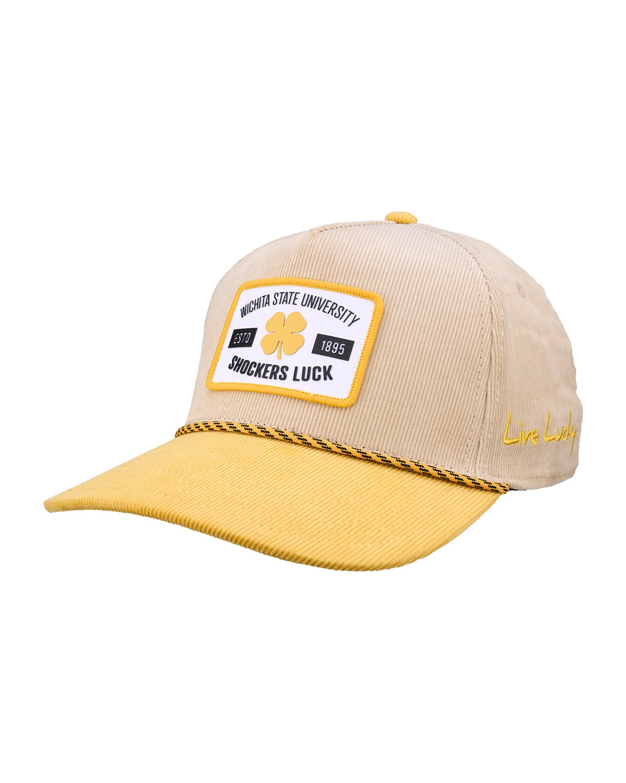 Celebrate Shocker tradition with the Wichita State Legacy Hat — a retro cream and black snapback built for fans who live for game day heritage. Crafted from premium corduroy and finished with rope and an HD clover patch, this Wichita State University snapback blends vintage style with modern comfort, making it a staple from Charles Koch Arena to everyday wear.