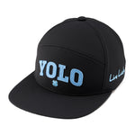 Our adjustable Yolo 1 hat is a fun addition to any wardrobe. In black with 3D cerulean blue applique and laser perforation, this flat-brim five-panel arch fitted hat will keep you stylish, on-trend, and looking like a pro. A perfect reminder to seize the day, this headwear is both trendy and meaningful.